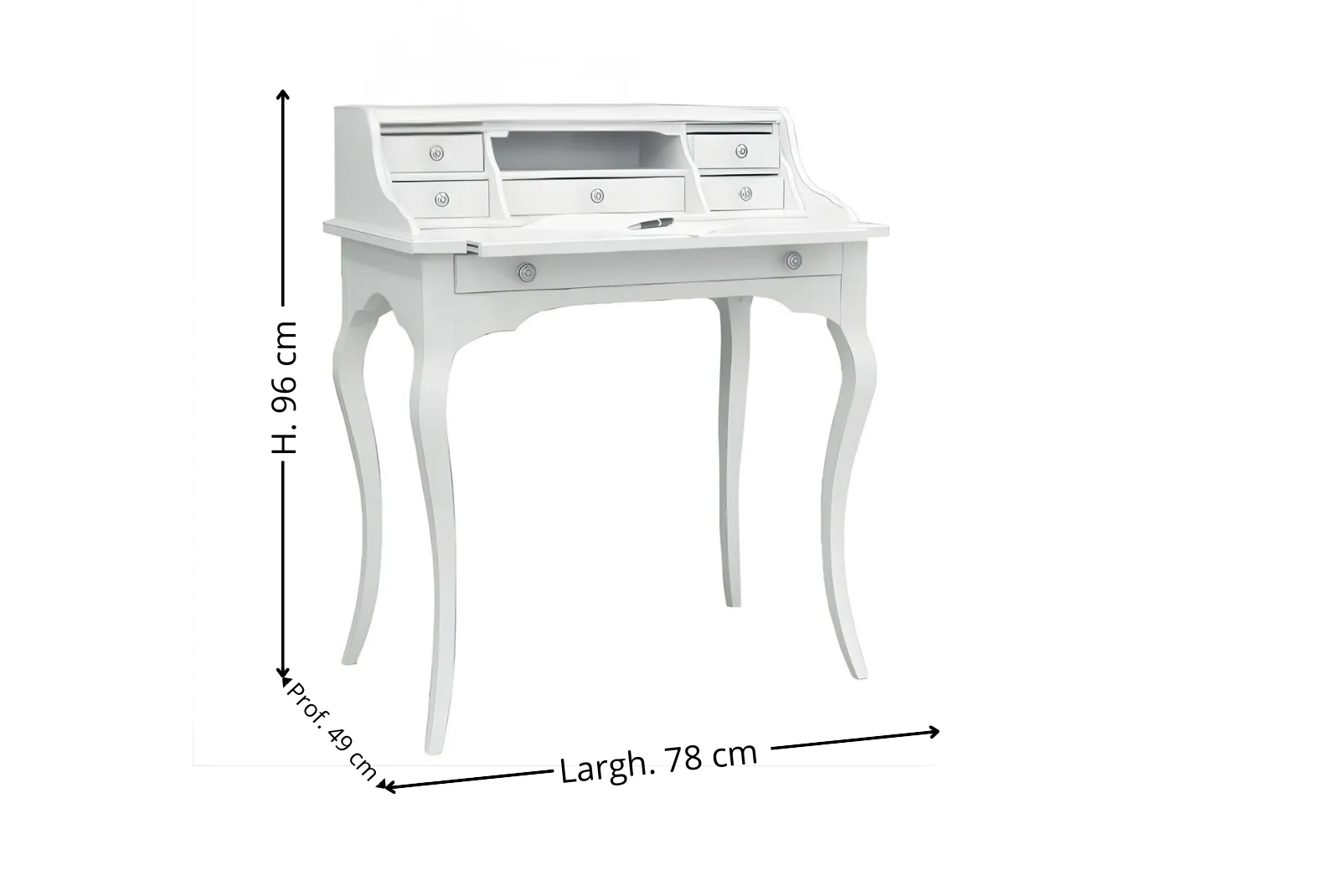 | Dimensioni Scrittoio | Larghezza 78 – Profondità 49 – Altezza 96 cm |