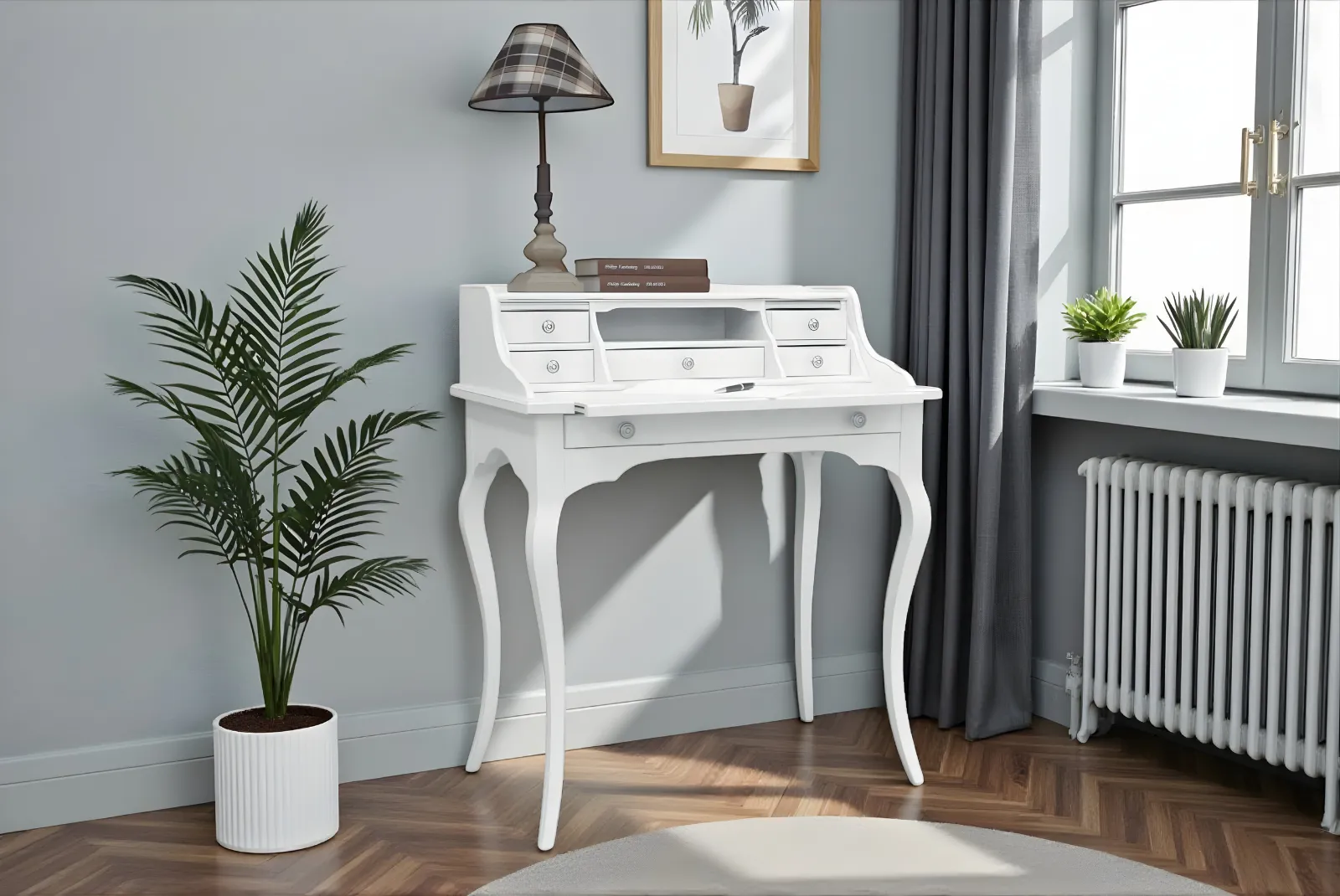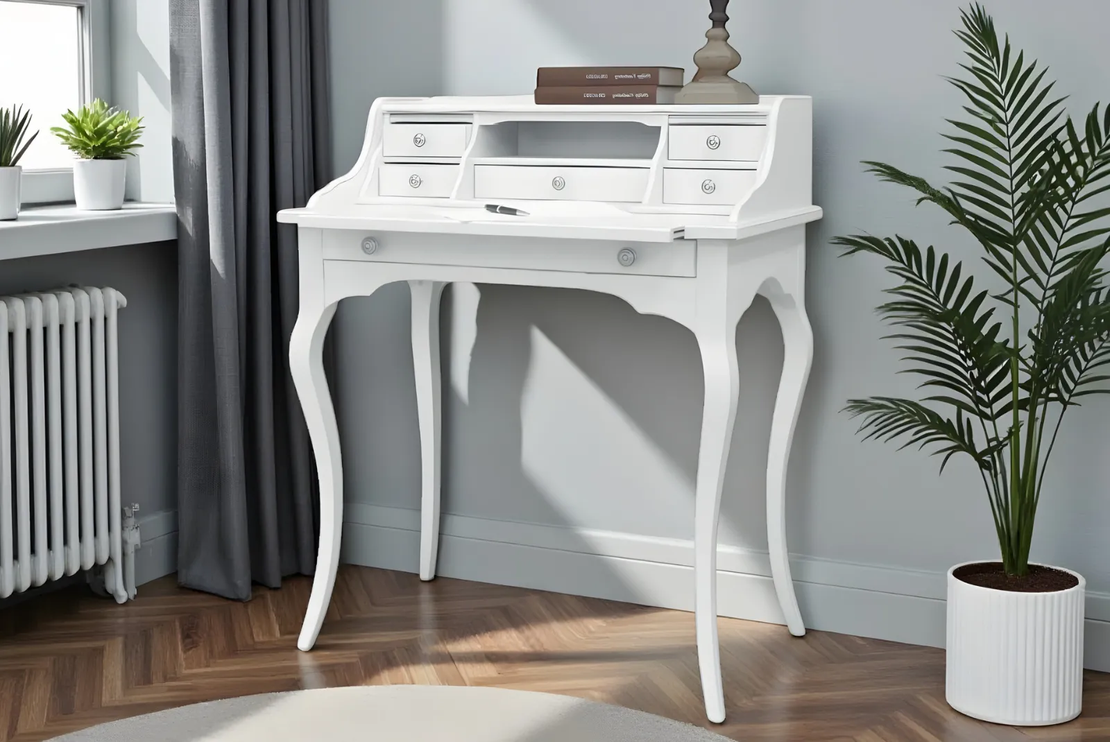 Questo tipo di scrittoio è perfetto per uno studio, una camera da letto o un ufficio domestico, creando un ambiente di lavoro accogliente e ben organizzato.