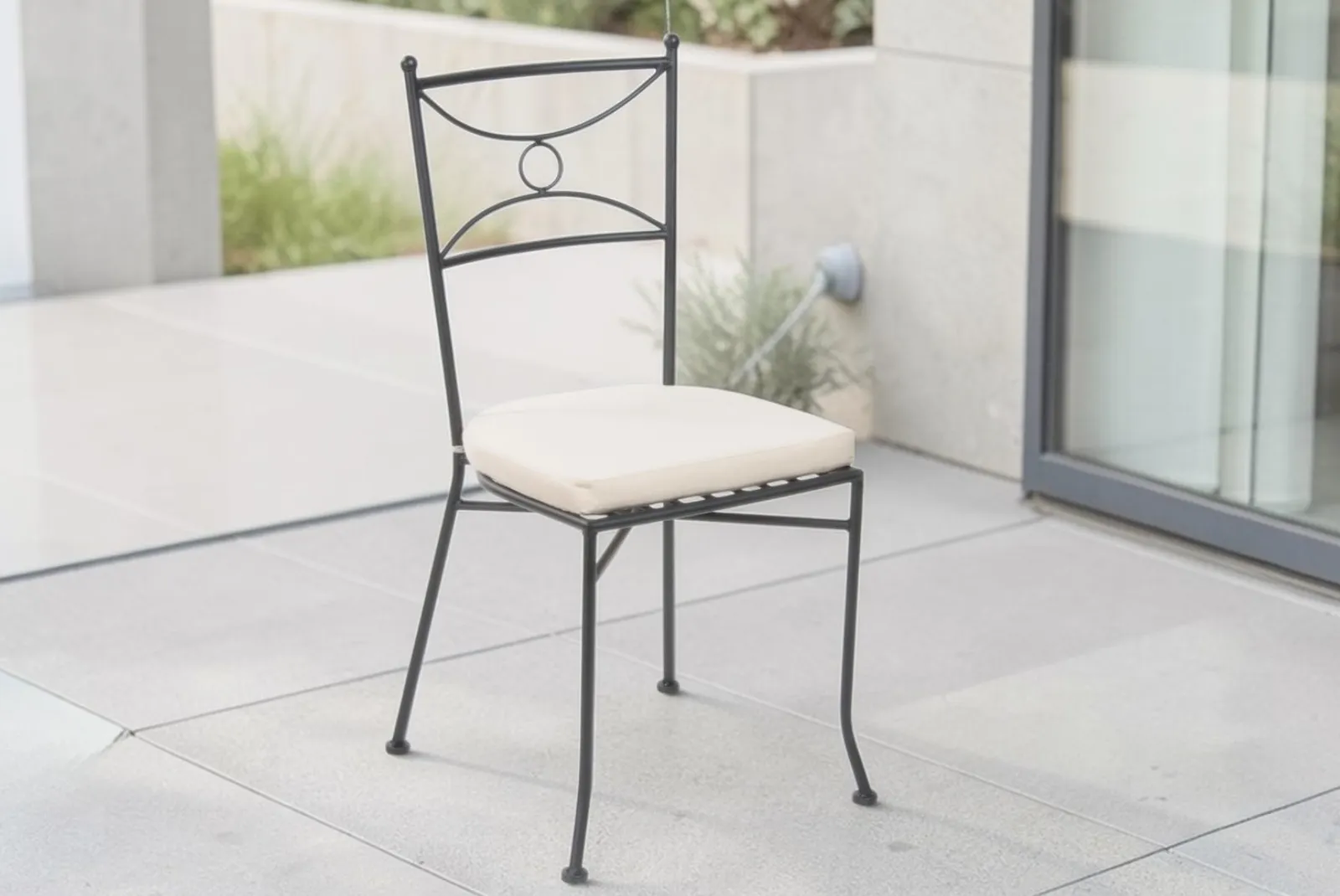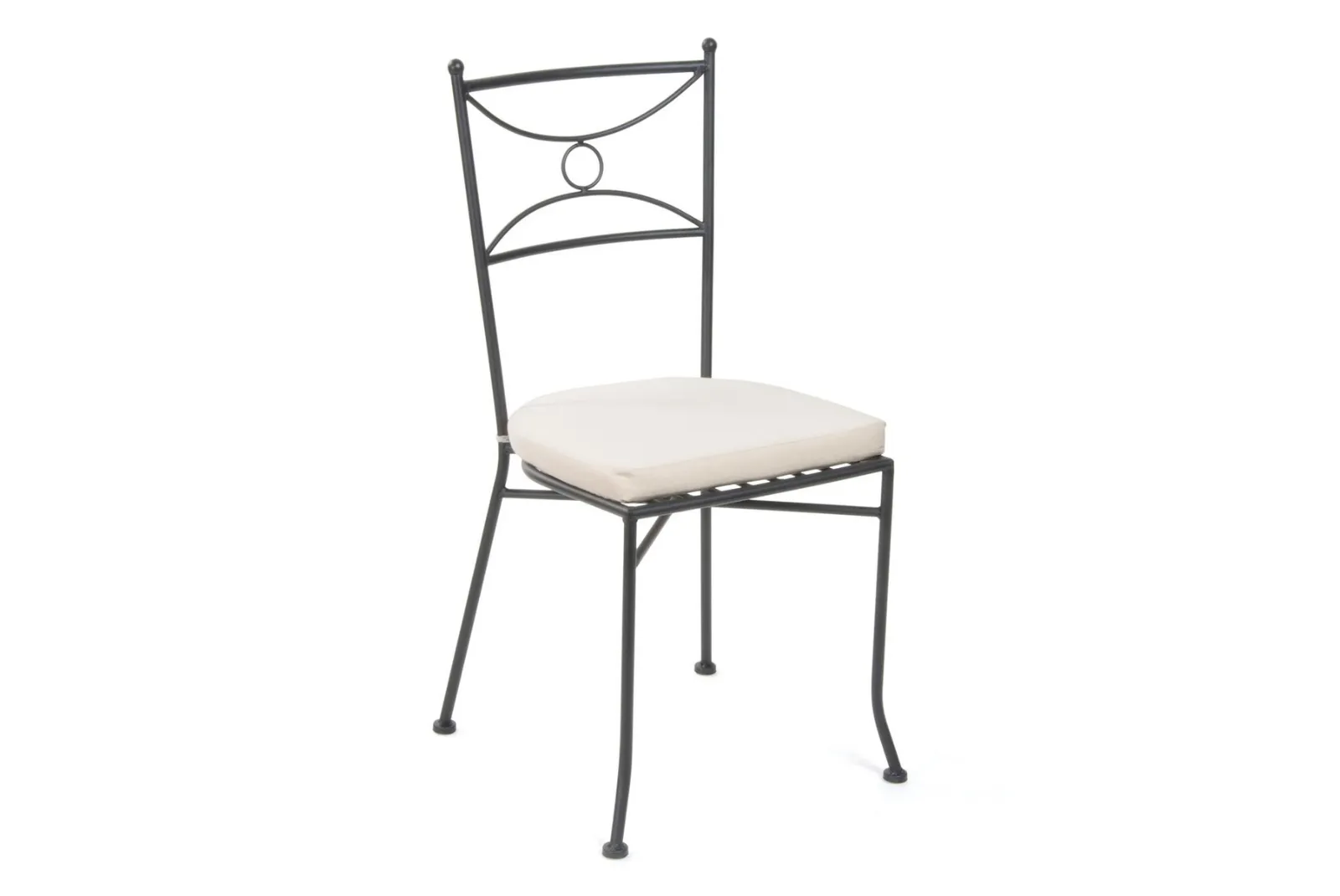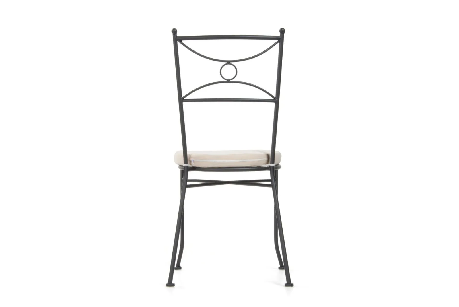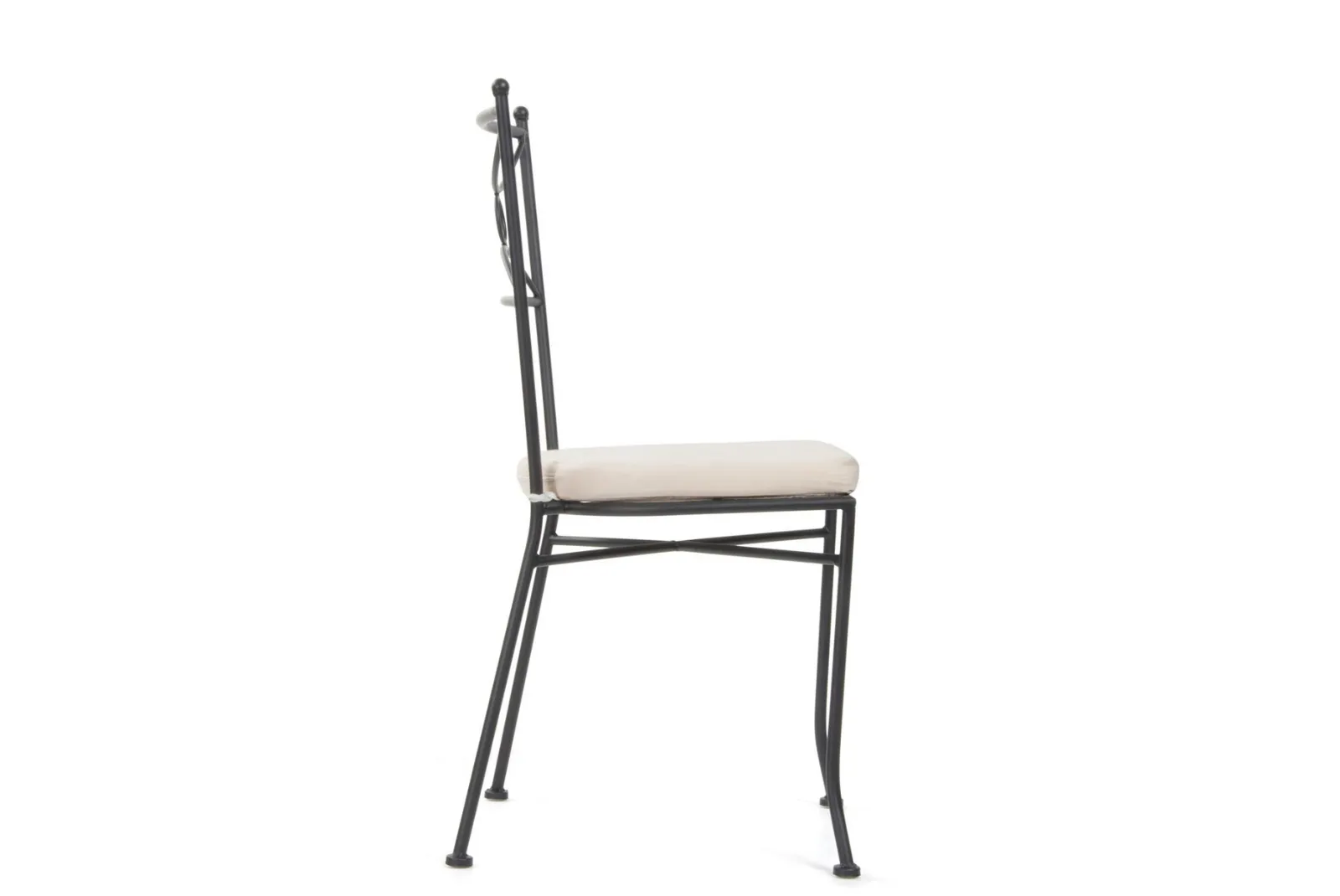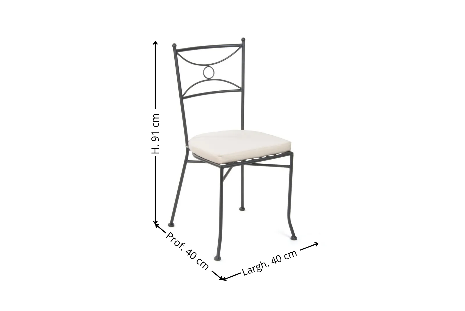 Sedia con struttura in acciaio galvanizzato e verniciato a polvere nero opaco (finitura liscia), tessuto cuscino in poliestere impermeabile beige, spessore cm 4,5 , tubolari Ø mm 16.