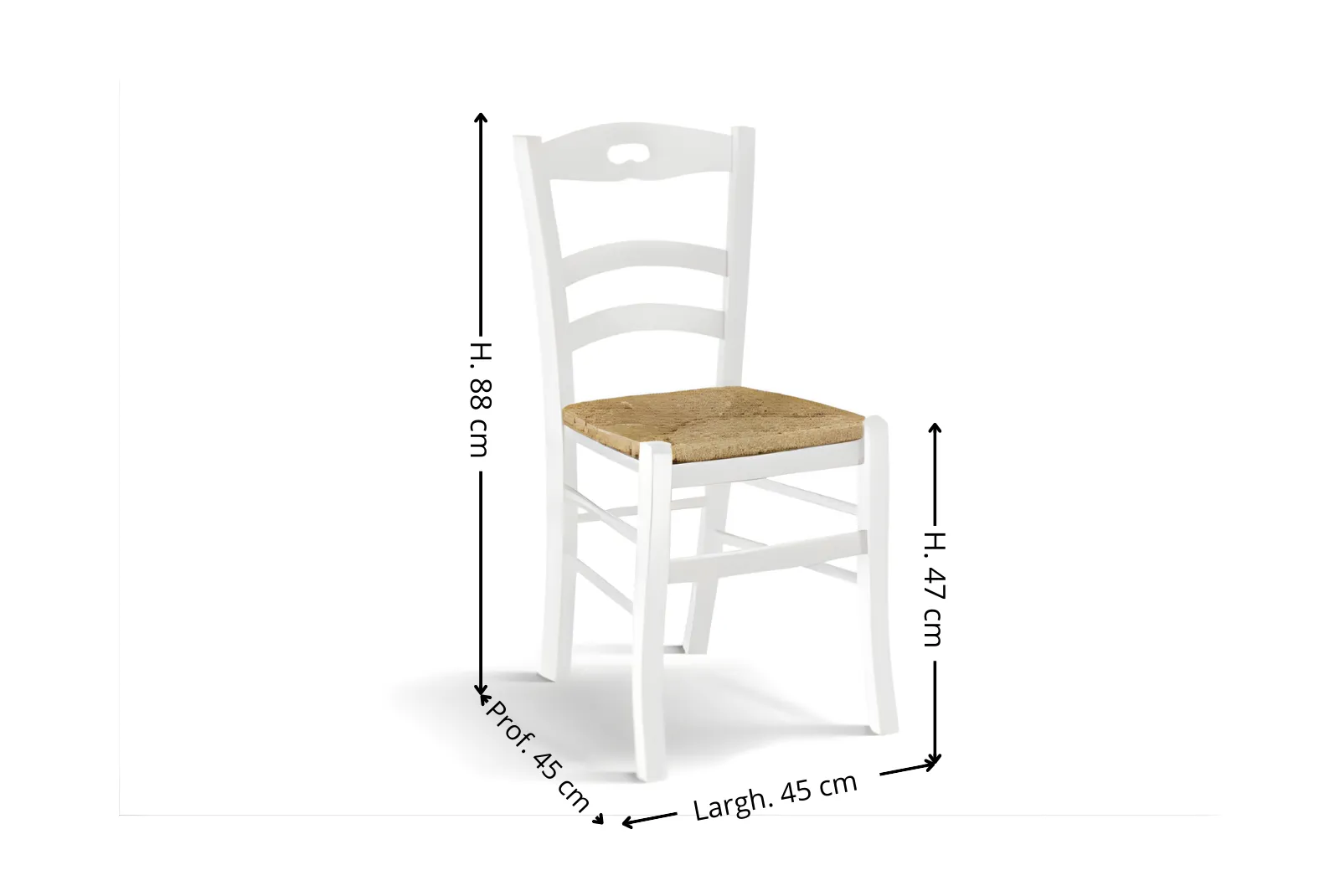 | Dimensioni Sedie | Larghezza 45 cm – Profondità 45 cm – Altezza 88 cm – Altezza sopra sedile 47 cm |