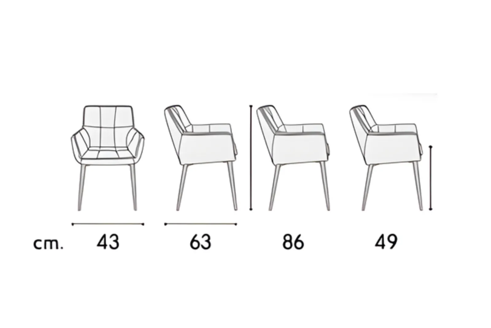 Larghezza 43 – Profondità 63 – Altezza 86 cm – Altezza sopra sedile 49 cm