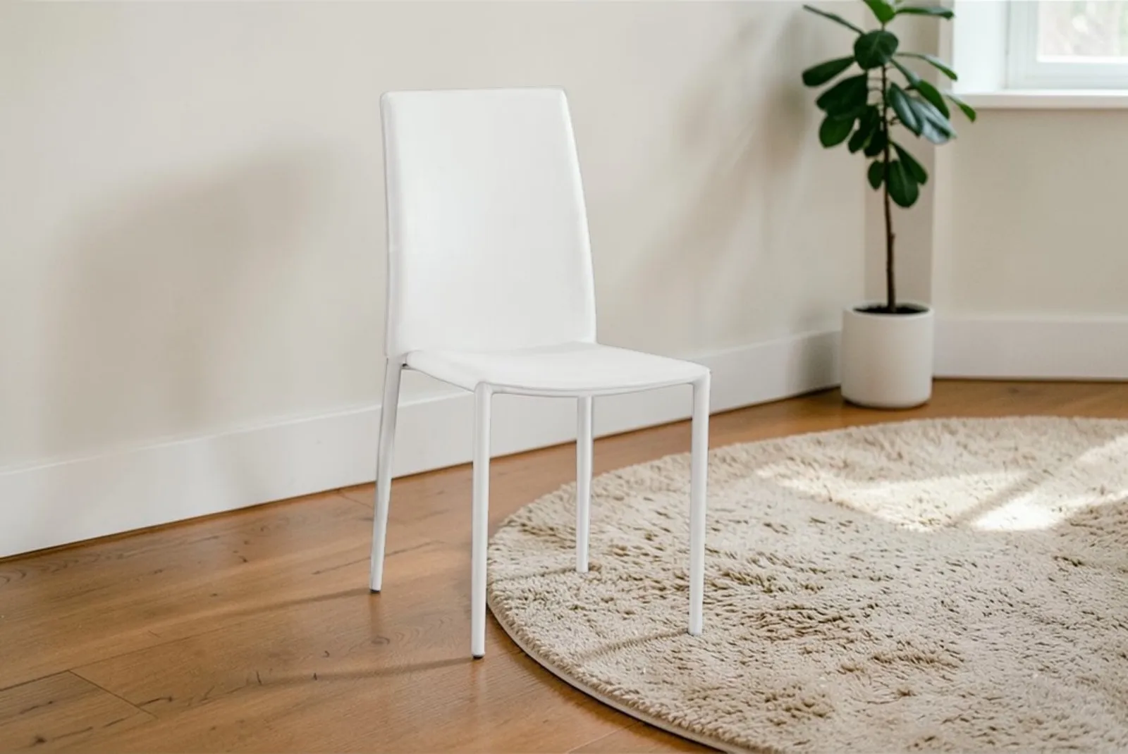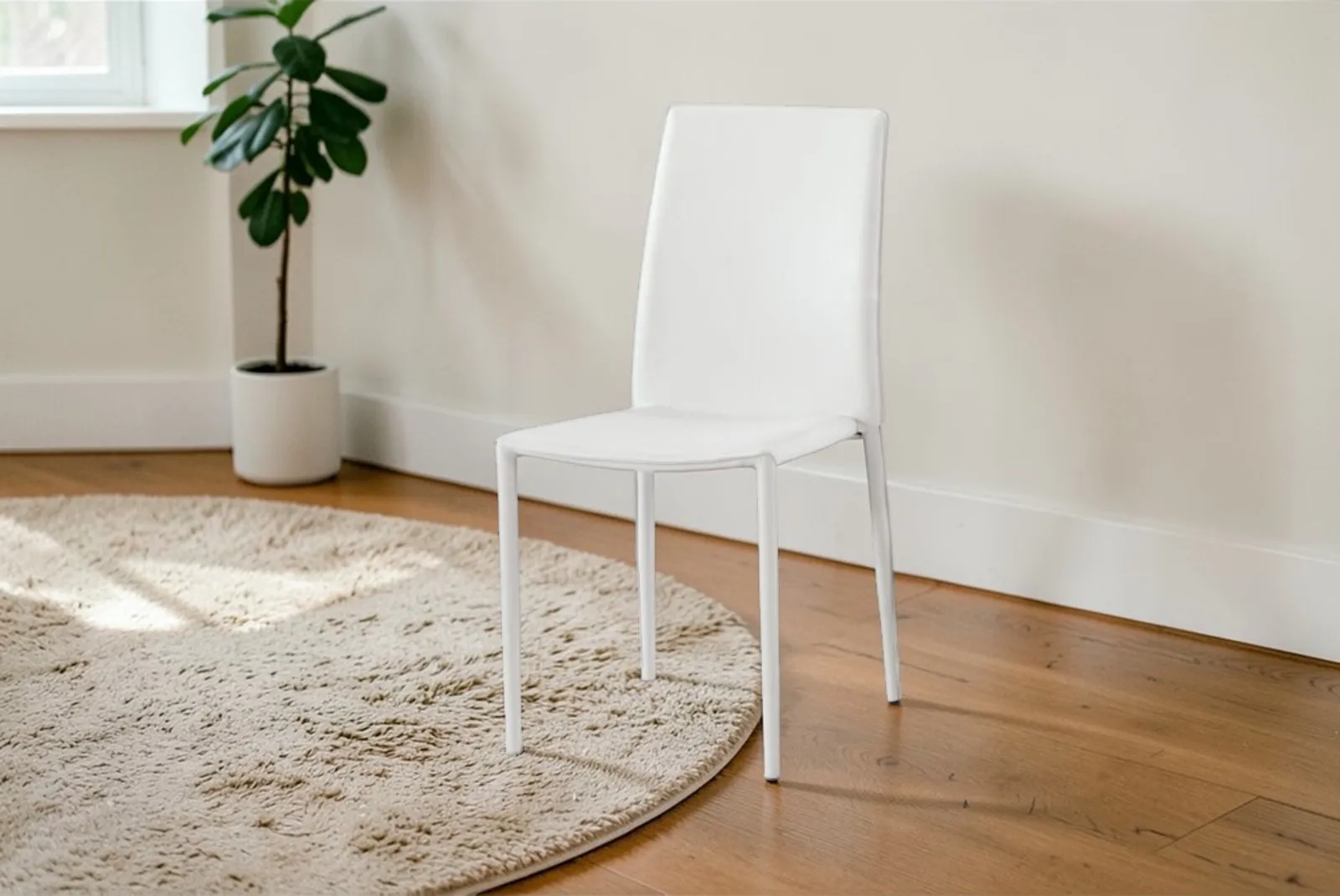 Arreda i tuoi spazi con la funzionalità e l’eleganza di questa Sedia Ecopelle Bianca – Articolo 613. Perfetta per ambienti interni, questa sedia è la soluzione ideale per chi cerca una seduta pratica, versatile e resistente.