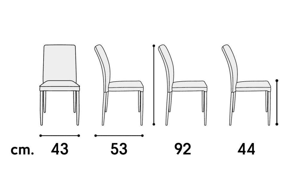 - Misure: Larghezza 43 cm – Profondità 53 cm – Altezza 92 cm – Altezza sopra sedile 44 cm