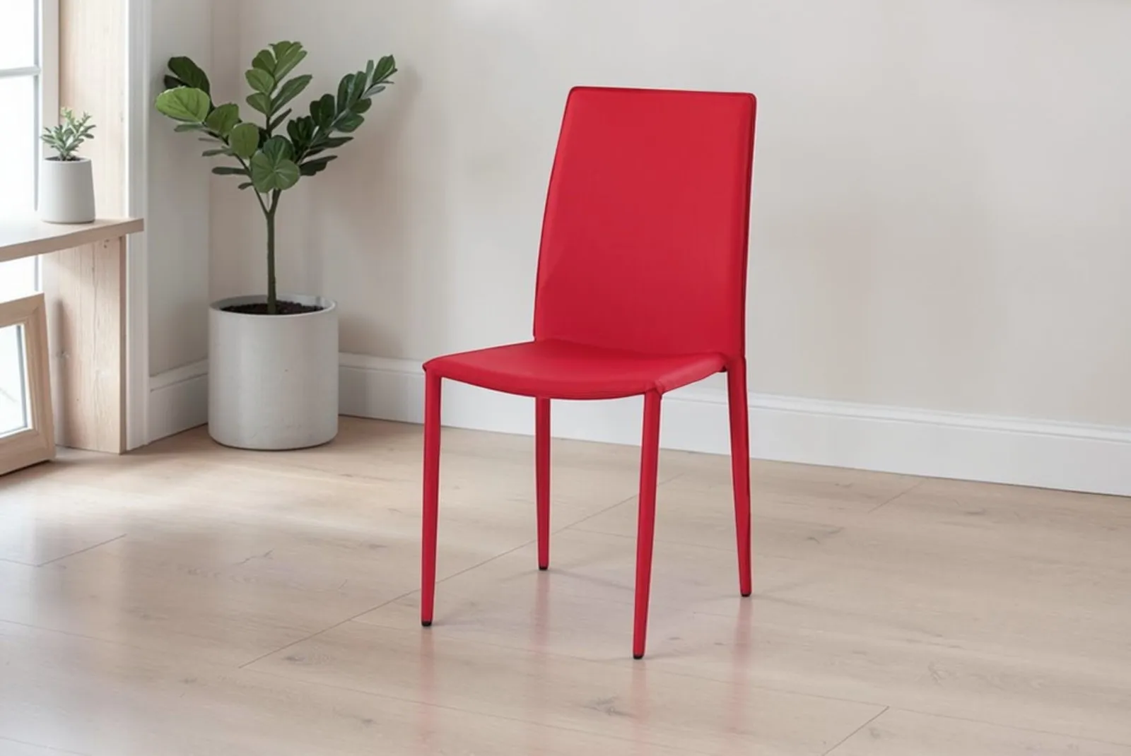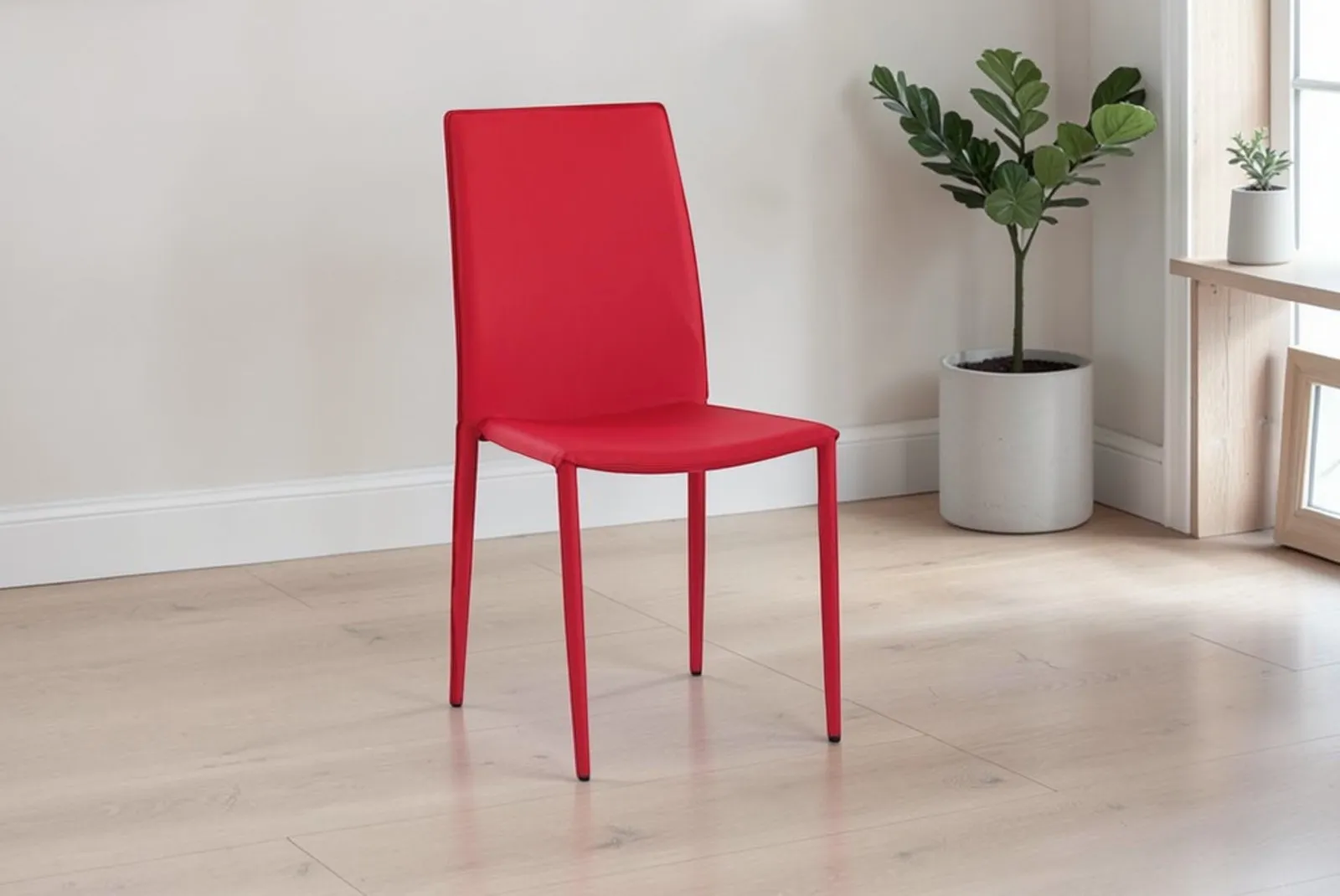 Arreda i tuoi spazi con la funzionalità e l’eleganza di questa Sedia Ecopelle Rossa – Articolo 614. Perfetta per ambienti interni, questa sedia è la soluzione ideale per chi cerca una seduta pratica, versatile e resistente.