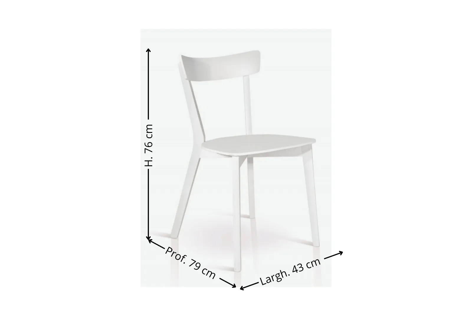 - Misure: Larghezza 43 cm – Profondità 79 cm – Altezza 76 cm – Altezza sopra sedile 41,5 cm