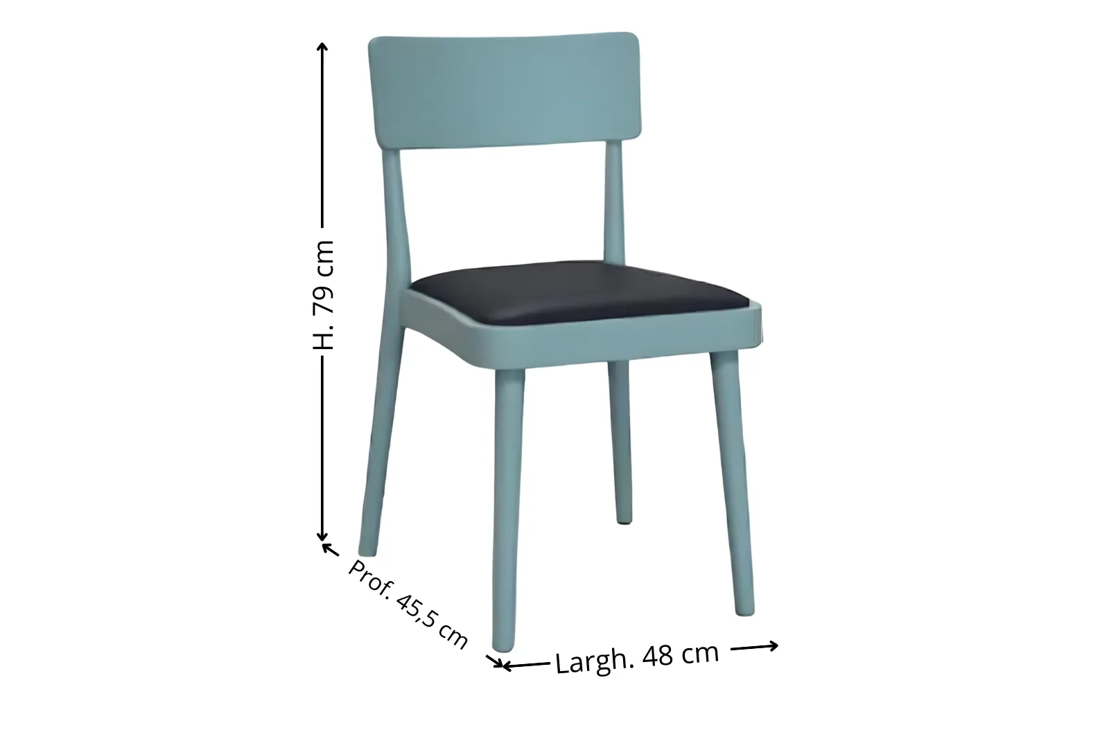 | Dimensioni Sedia | Larghezza 48 cm – Profondità 45.5 cm – Altezza 79 cm – Altezza sopra sedile 46 cm |
