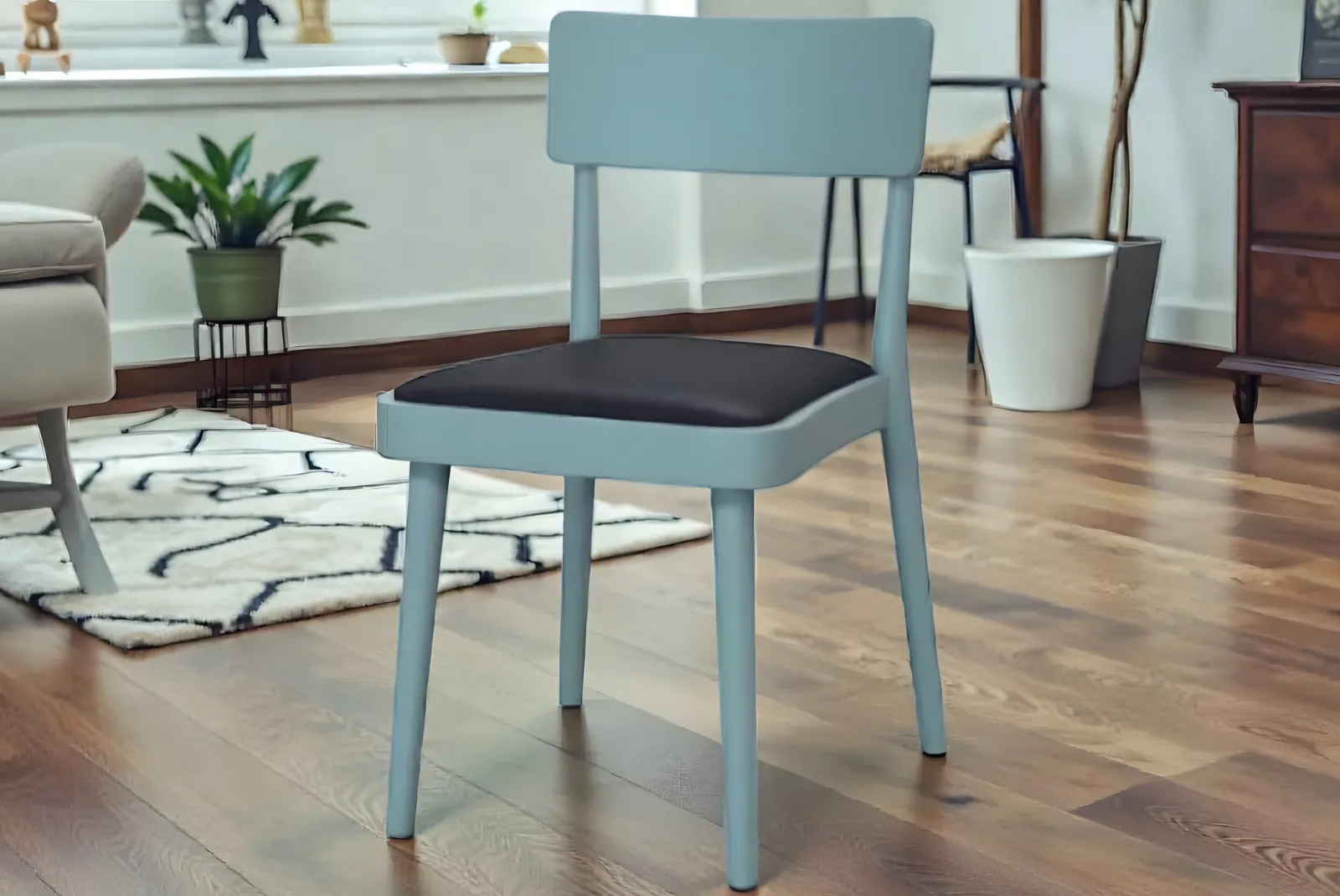 Scopri l’eleganza senza tempo della nostra sedia in legno color verde mare e seduta in ecopelle nera, un capolavoro di artigianato che unisce stile e comfort. Il suo design classico si adatta perfettamente a qualsiasi arredamento, dal moderno al tradizionale, aggiungendo un tocco di raffinatezza al tuo spazio.