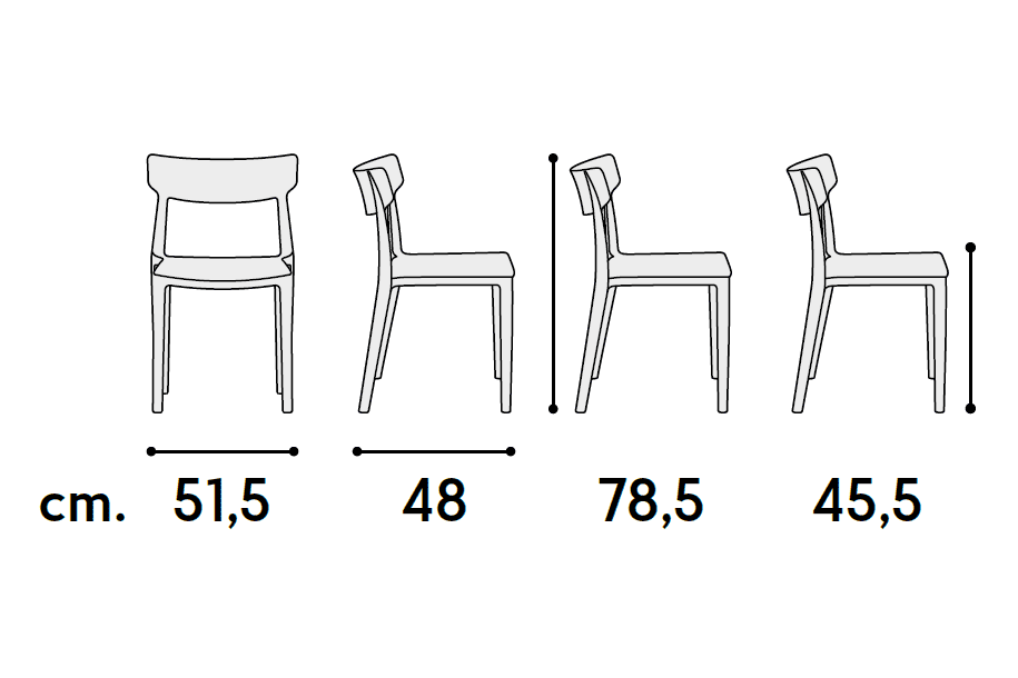 - Misure: Larghezza 52.5 cm – Profondità 48 cm – Altezza 78.5 cm – Altezza sopra sedile 45.5 cm