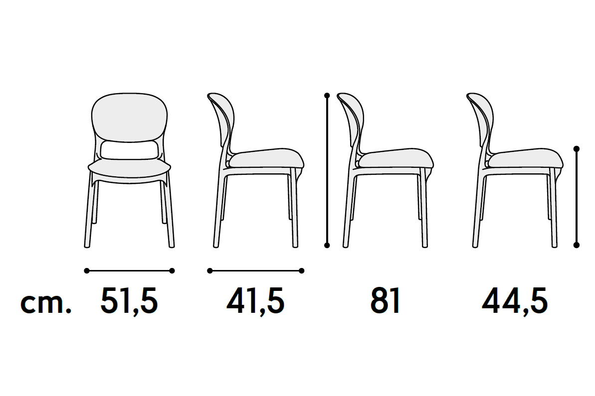 - Misure: Larghezza 51.5 cm – Profondità 41.5 cm – Altezza 81 cm – Altezza sopra sedile 44.5 cm
