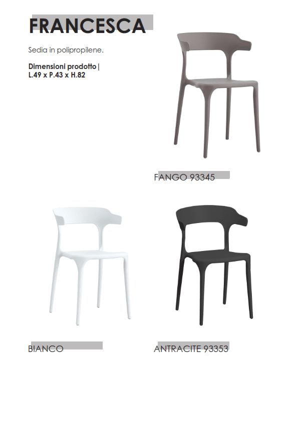 | Colori | Base e Seduta in Polipropilene Antracite 93353, Base e Seduta in Polipropilene Bianco, Base e Seduta in Polipropilene Fango 93345 |