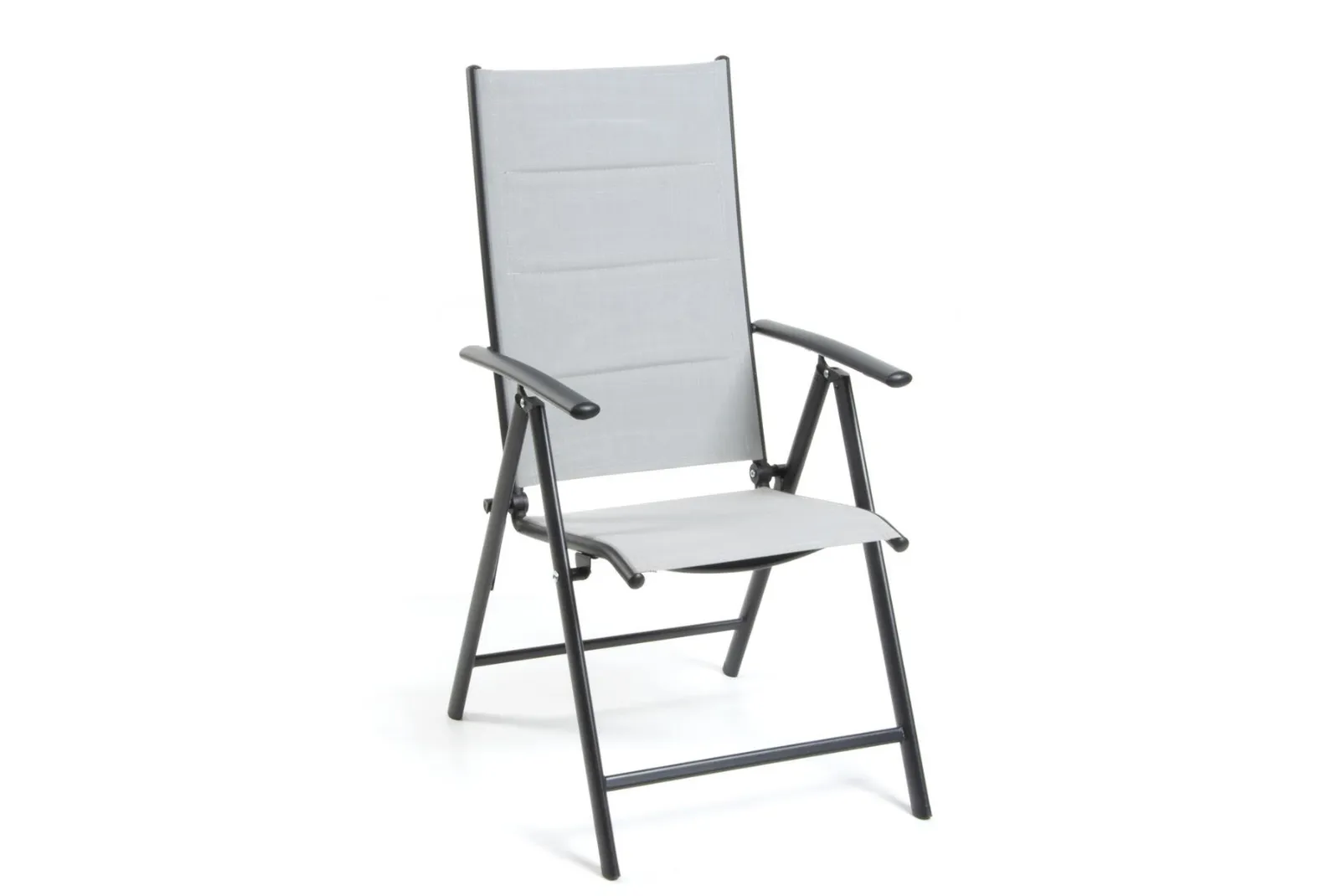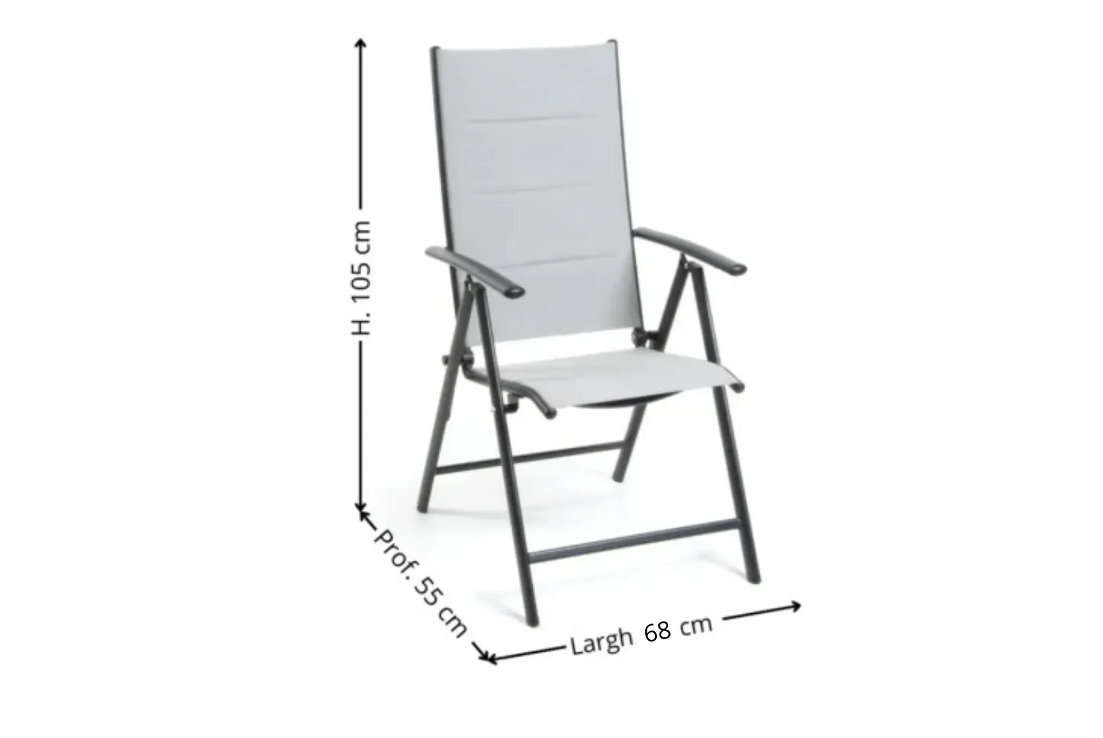 Sedia: Pieghevole con schienale reclinabile, 8 posizioni con braccioli