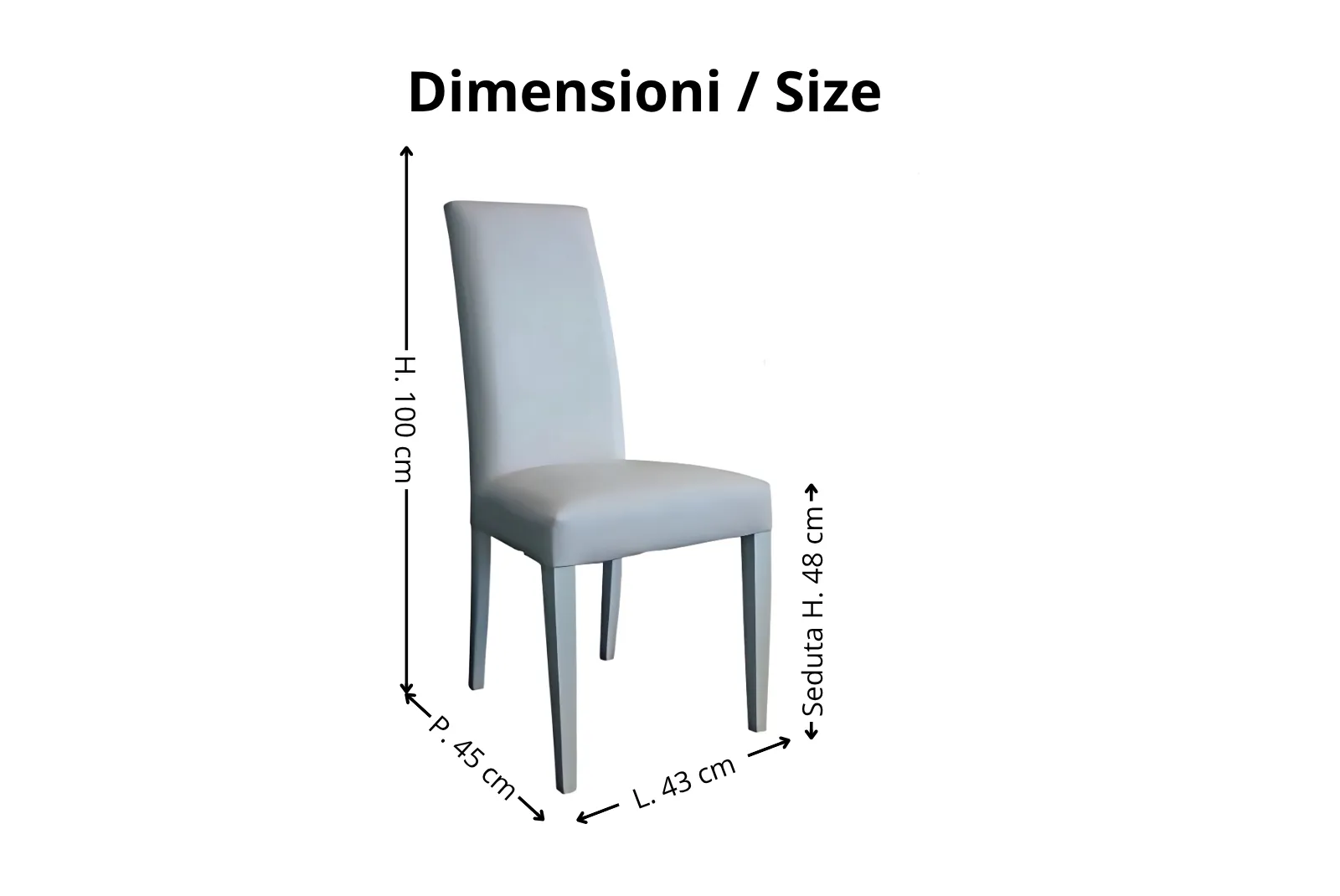 | Colori e quantità | 2 sedie Imbottita Bianca con gambe bianche, 2 sedie imbottita Tortora con gambe tortora , 2 sedie imbottita Beige con gambe beige, 2 sedie imbottita Grigio con gambe grigio , 2 sedie imbottita Caffè gambe noce scuro , 4 sedie Imbottita Bianca con gambe bianche, 4 sedie imbottita Tortora con gambe tortora , 4 sedie imbottita Beige con gambe beige, 4 sedie imbottita Grigio con gambe grigio , 4 sedie imbottita Caffè gambe noce scuro , 6 sedie Imbottita Bianca con gambe bianche, 6 sedie imbottita Tortora con gambe tortora , 6 sedie imbottita Beige con gambe beige, 6 sedie imbottita Grigio con gambe grigio , 6 sedie imbottita Caffè gambe noce scuro |