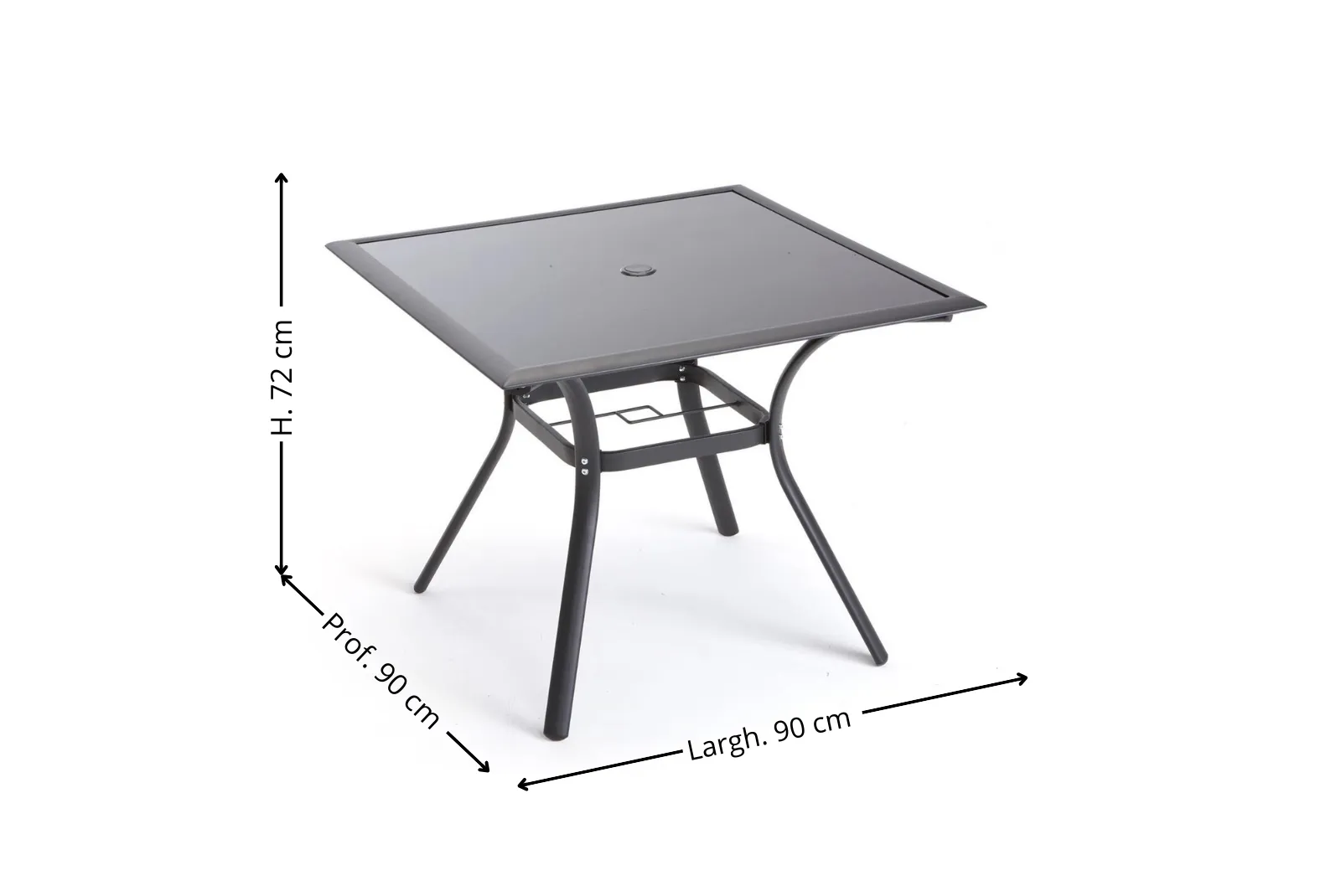 - Dimensioni Tavolo: L.90 – Prof.90 – H.72 cm