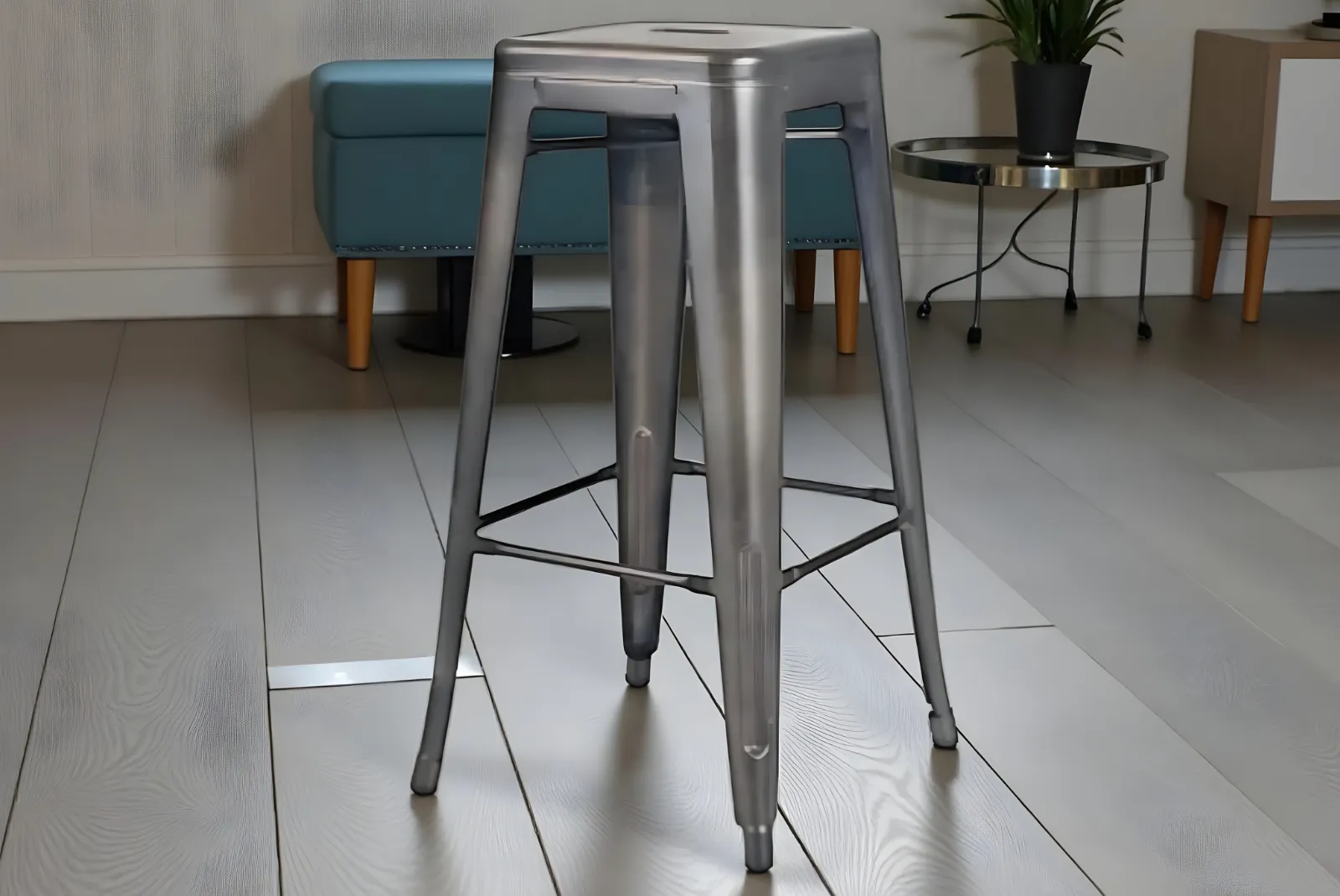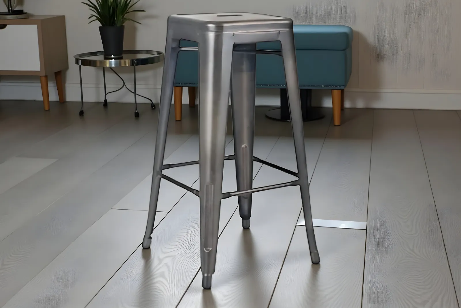 Dona un tocco di stile e funzionalità al tuo arredamento con questo Sgabello Colore Canna di Fucile in metallo dal design moderno e minimalista.