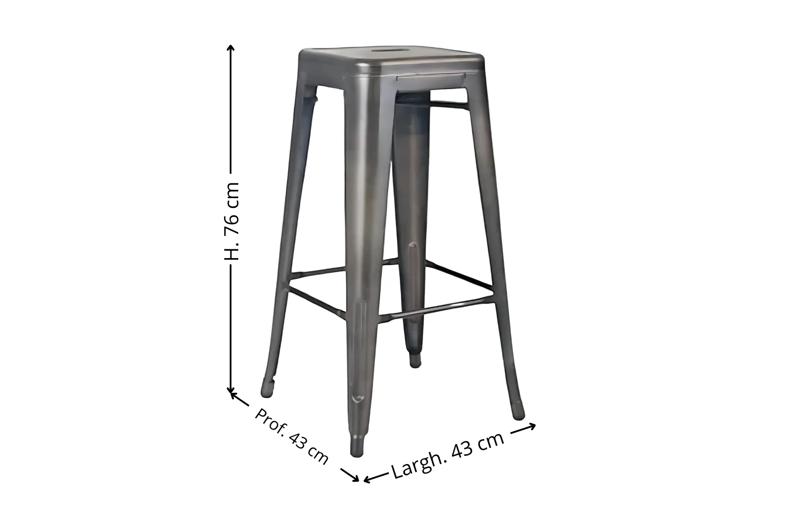 | Dimensioni Sgabello | Larghezza 43 – Profondità 43 – Altezza 76 cm |