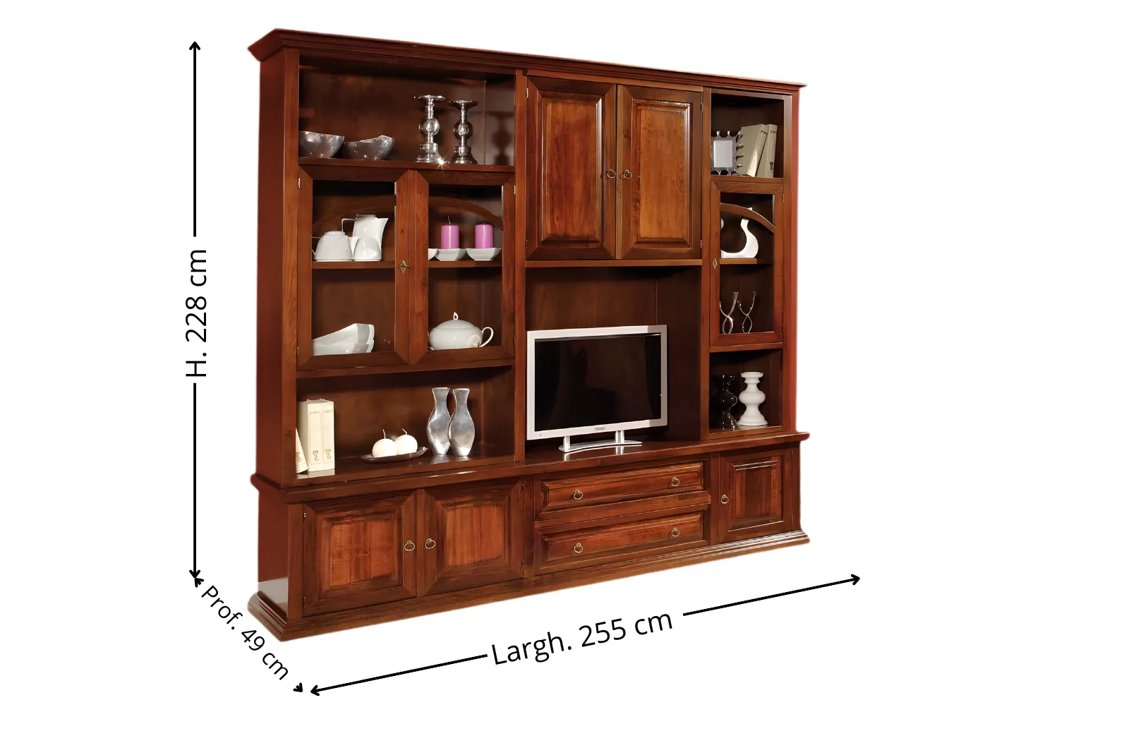 Larghezza 255 – Profondità 49 – Altezza 228 cm