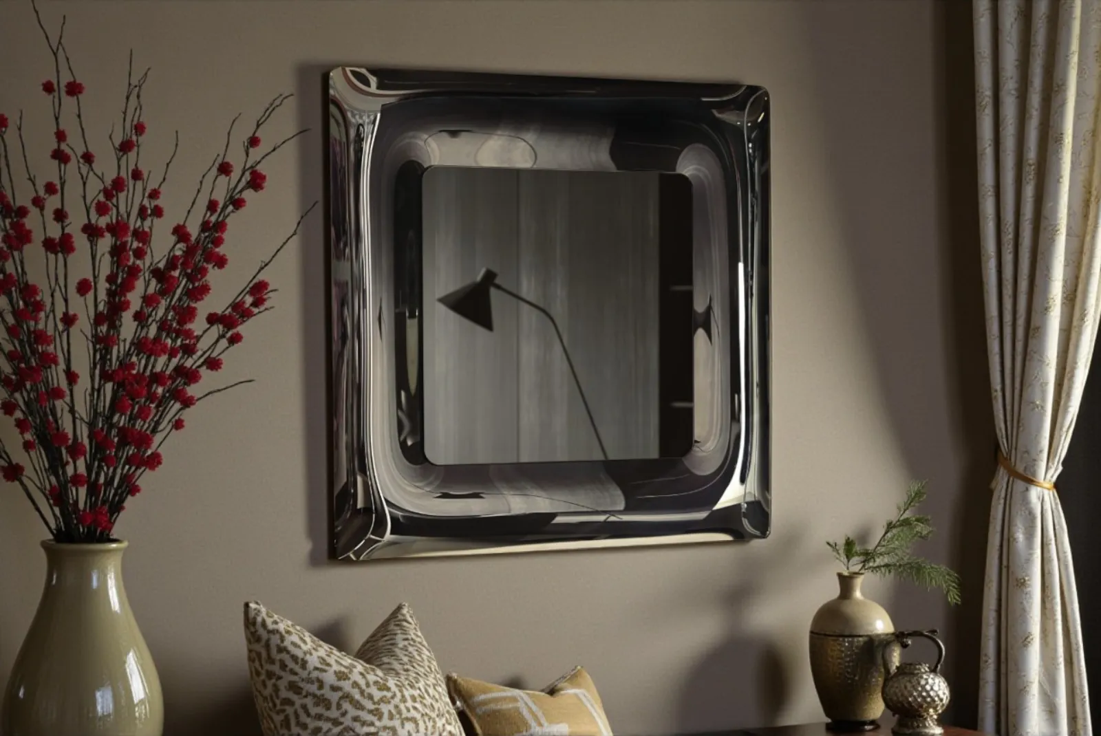 Lo Specchio Cindy L.95 x H.95 è un raffinato complemento d’arredo ideale per arricchire qualsiasi ambiente domestico con eleganza e funzionalità. Perfetto per essere posizionato in diverse stanze, come il soggiorno, la camera da letto o persino un ingresso.