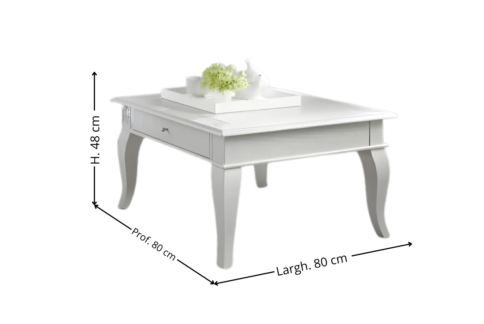 | Dimensioni Tavolino | Larghezza 80 – Profondità 80 – Altezza 48 cm |