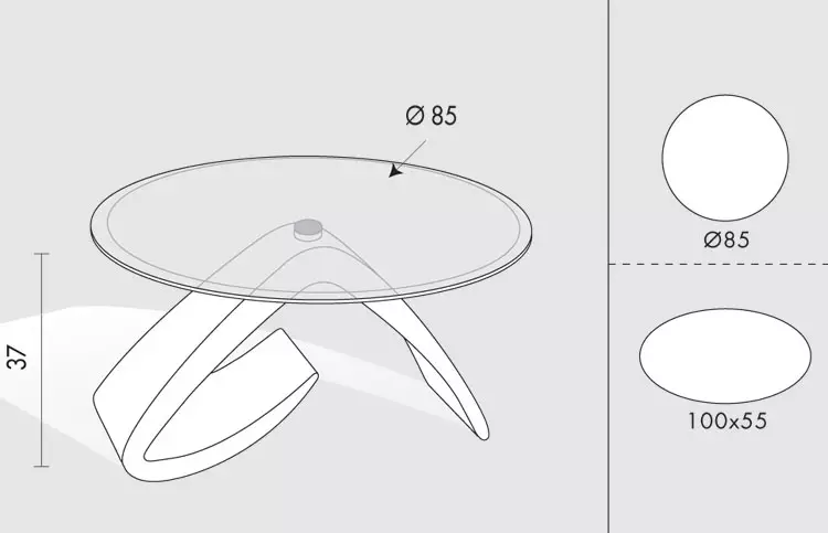 | Size | Ovale 100 x 55 cm con bordo bisellato, Rotondo con diametro 85 cm con bordo bisellato. H. 37 |