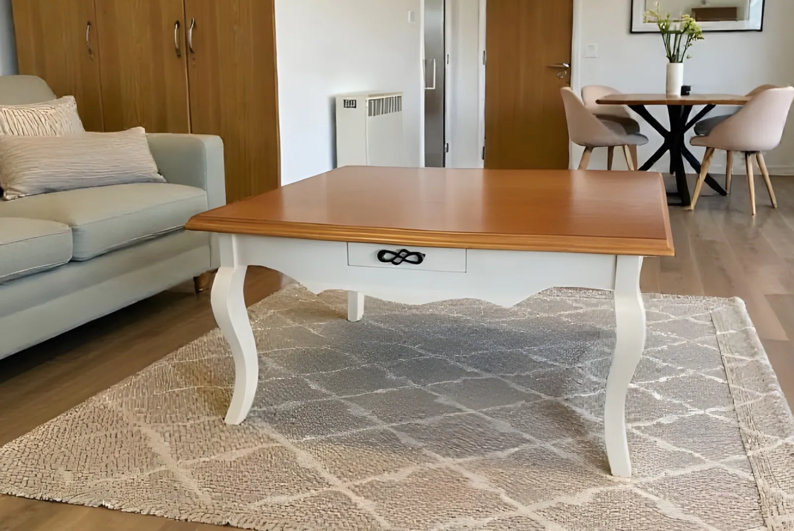 Perfetto per un soggiorno accogliente, questo tavolino è un invito alla convivialità e al calore di una casa vissuta.