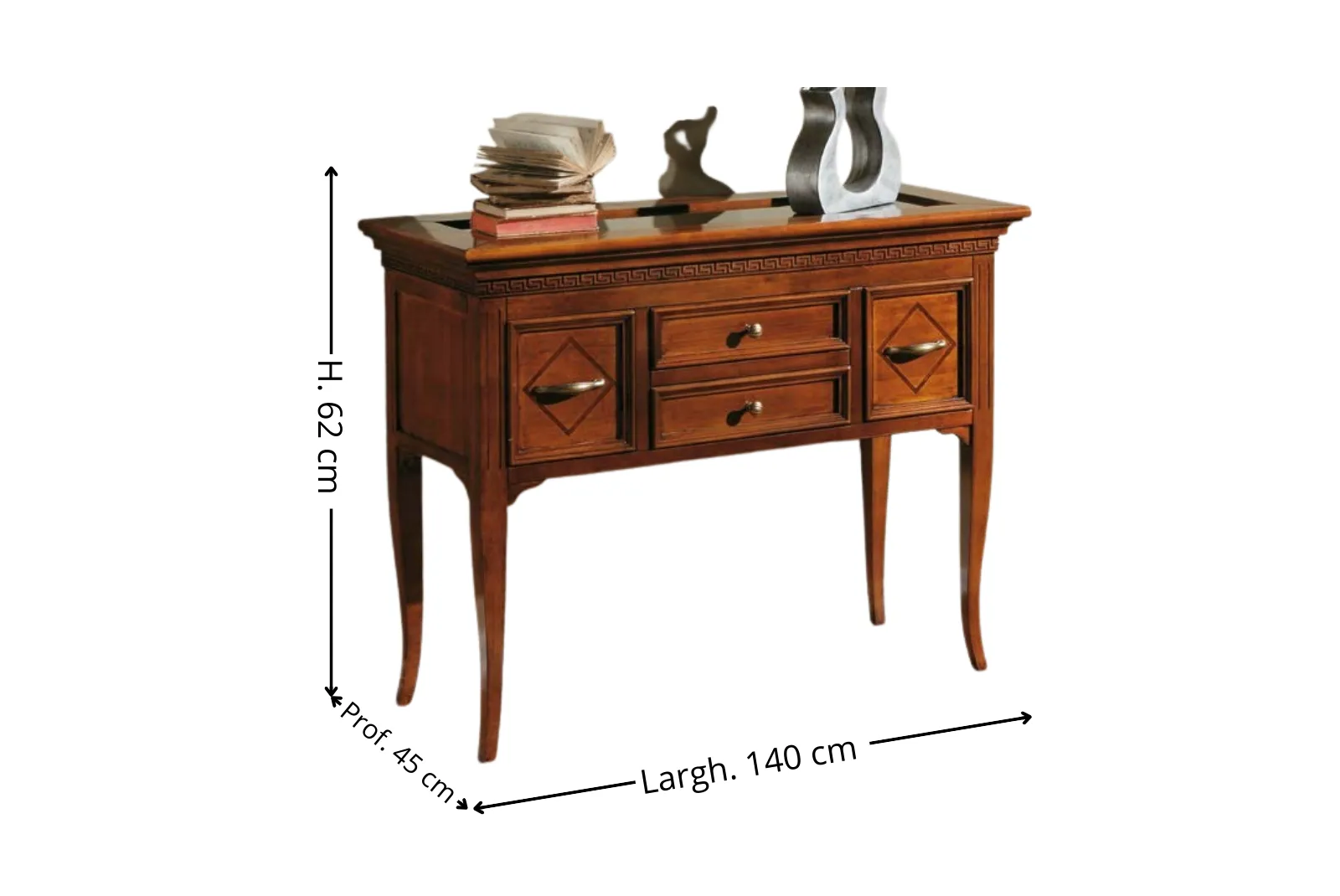 - Dimensioni: Larghezza 140 – Profondità 45 – Altezza 62 cm