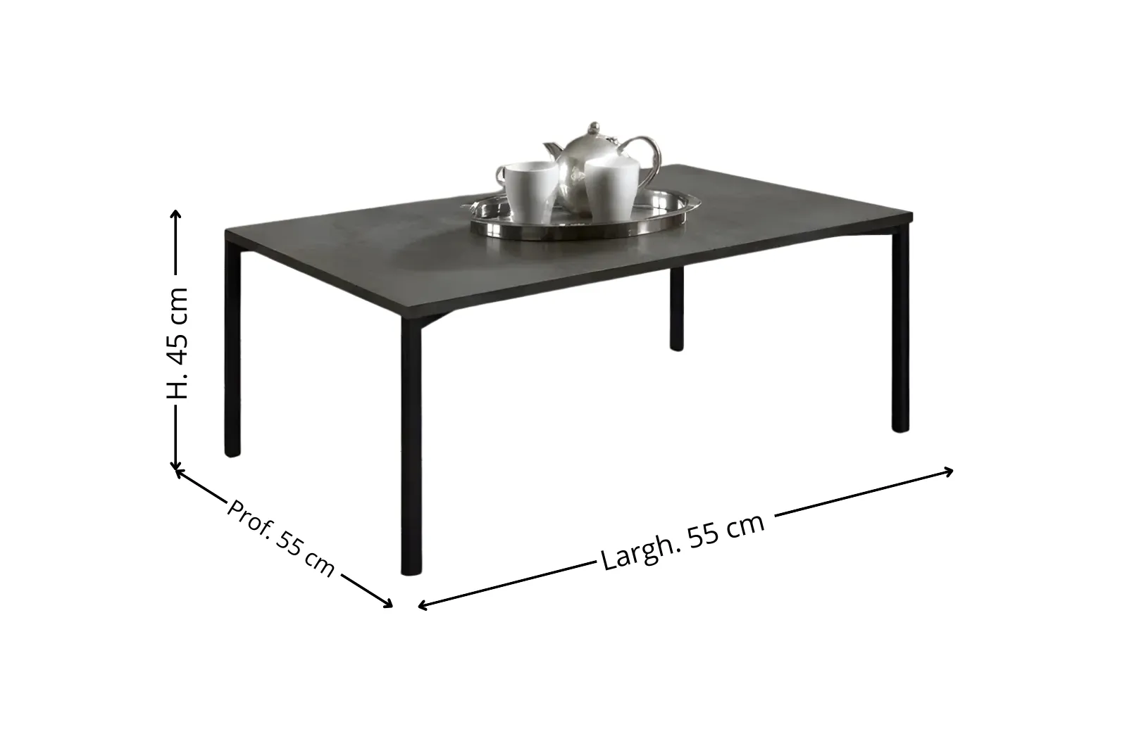 | Dimensioni Tavolino | Larghezza 55 – Profondità 90 – Altezza 45 cm |