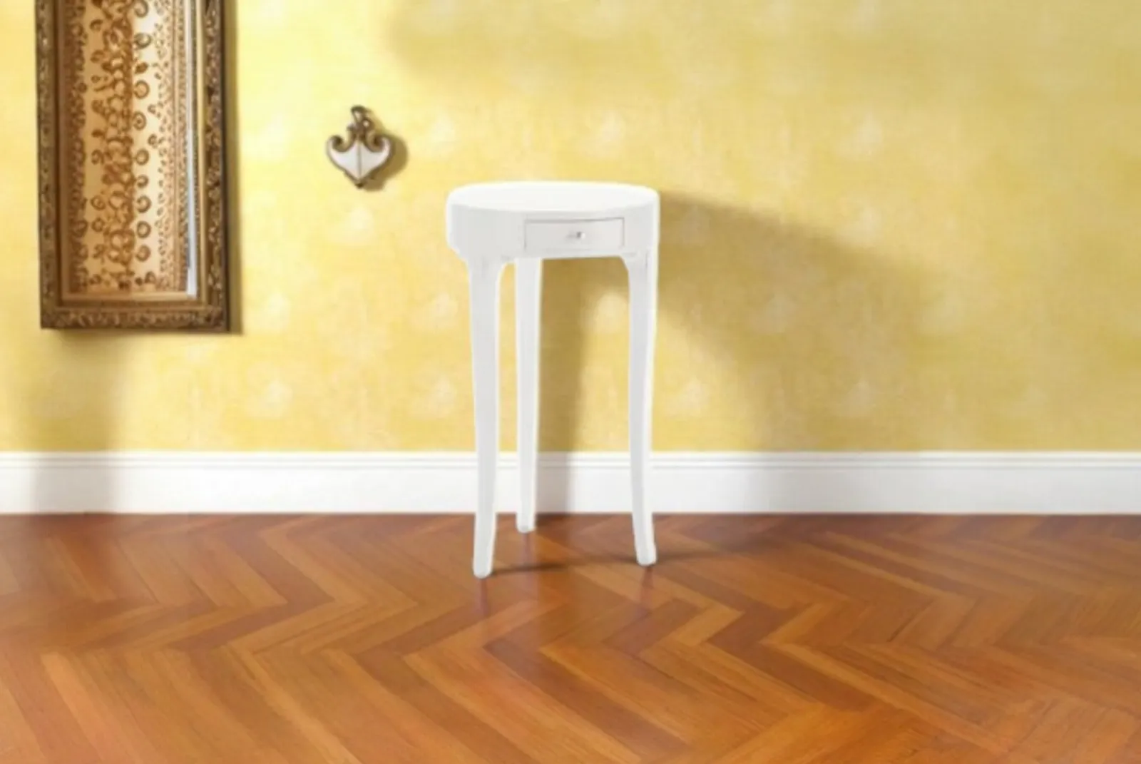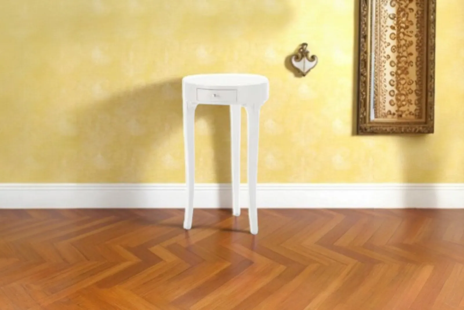 Questo Tavolino Rotondo laccato bianco 1 cassetto Ø 41 H 71 è realizzato a mano con maestria, questo tavolino incarna la bellezza autentica e la semplicità della natura. Le venature uniche del legno, lavorate con finiture rustiche, creano un pezzo unico e pieno di carattere. Perfetto per un soggiorno accogliente, questo tavolino è un invito alla convivialità e al calore di una casa vissuta.