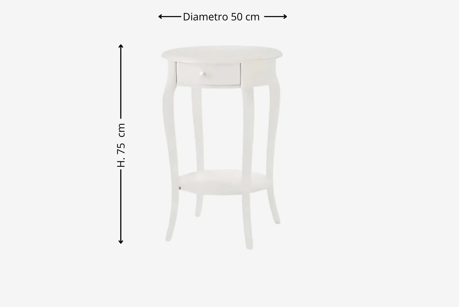 Tavolino rotondo laccato bianco 1 cassetto Ø 50 H 75