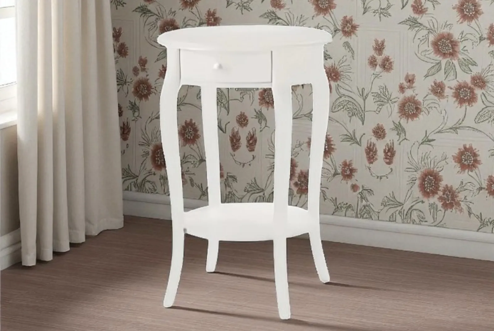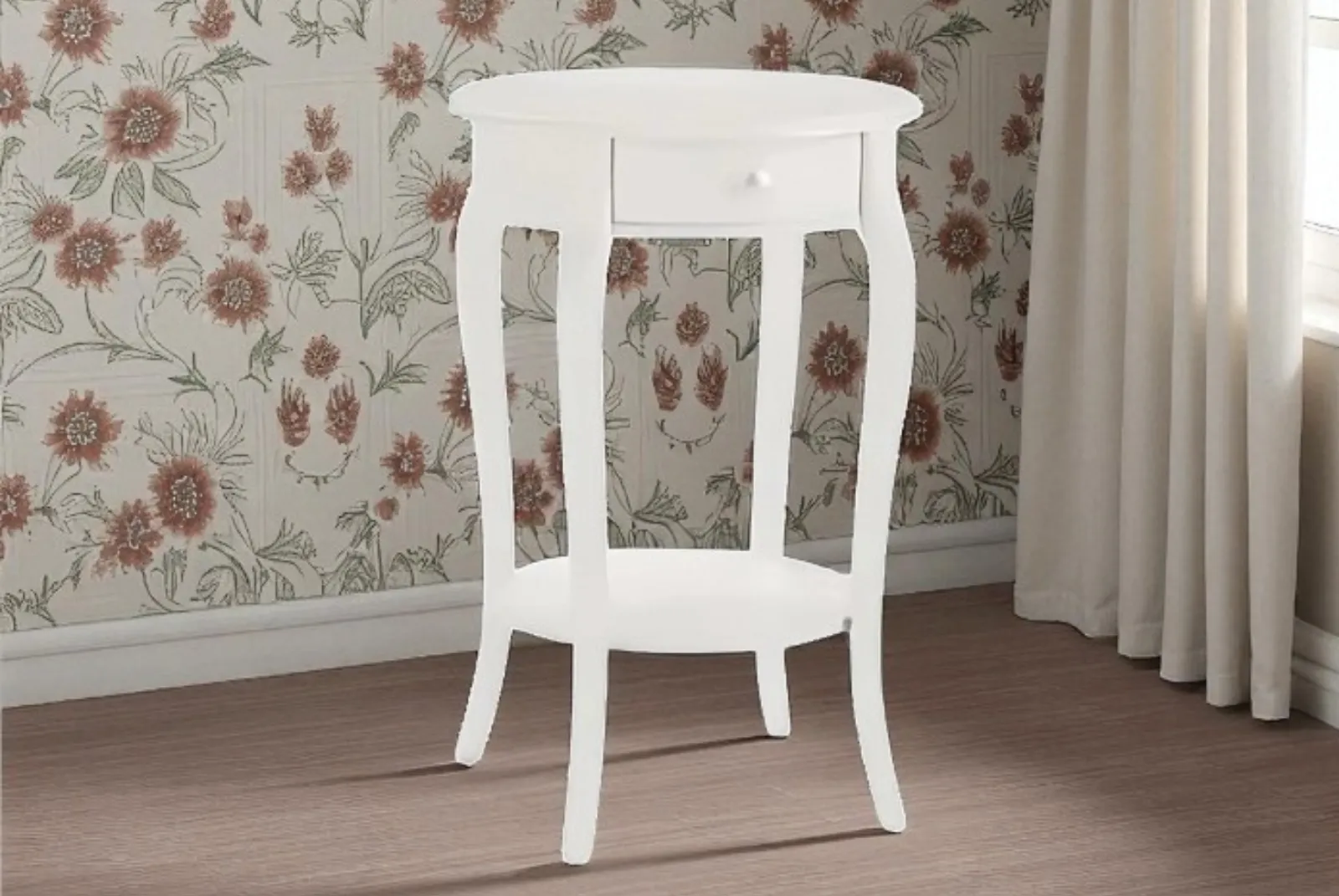 • Modello: Tavolino rotondo laccato bianco 1 cassetto
