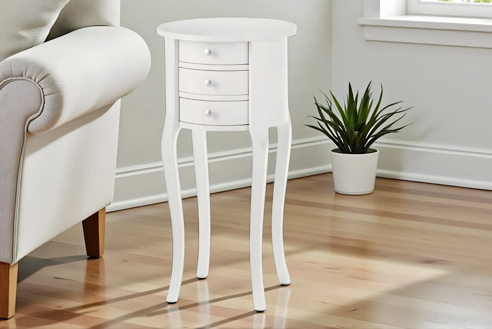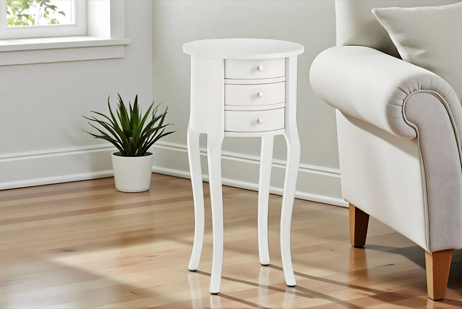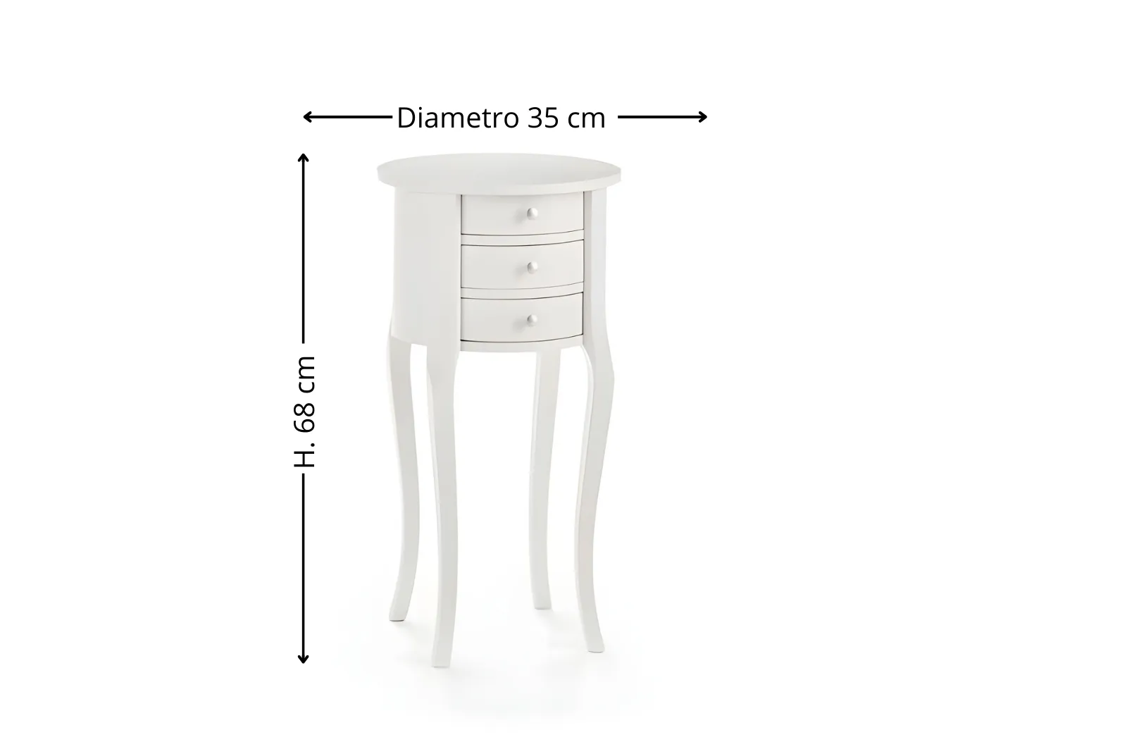 Il tavolino rotondo bianco 3 cassetti rappresenta un’aggiunta elegante e funzionale a qualsiasi spazio abitativo. Il design rotondo conferisce un tocco di morbidezza e fluidità, ideale per ambienti moderni o classici. La finitura bianca dona luminosità e si abbina facilmente a una vasta gamma di stili di arredamento.