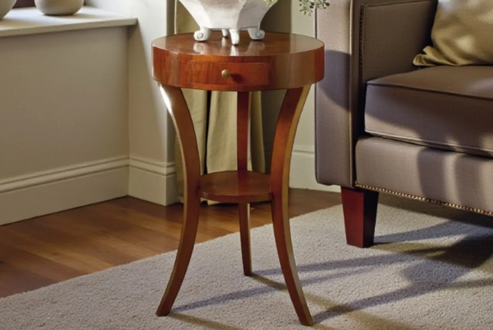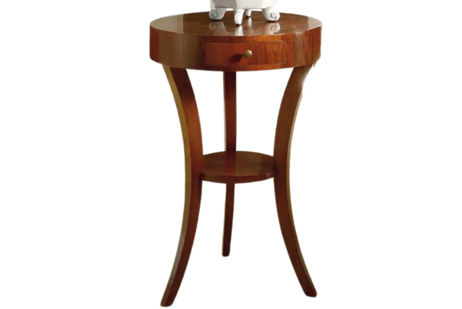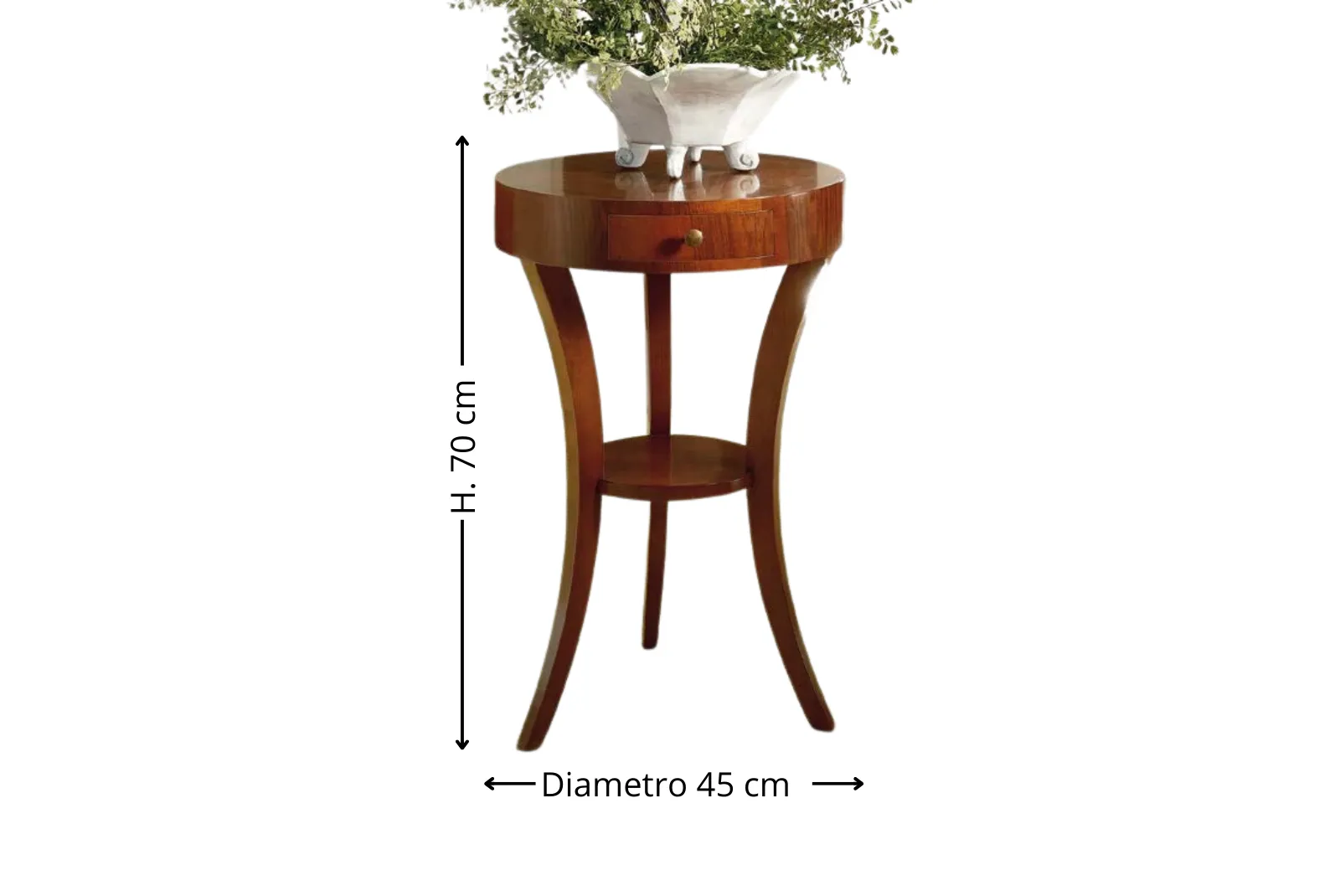Realizzato a mano con maestria, questo Tavolino tondo 1cassetto con ripiano noce intarsiato incarna la bellezza autentica e la semplicità della natura. Le venature uniche del legno, lavorate con finiture rustiche, creano un pezzo unico e pieno di carattere.