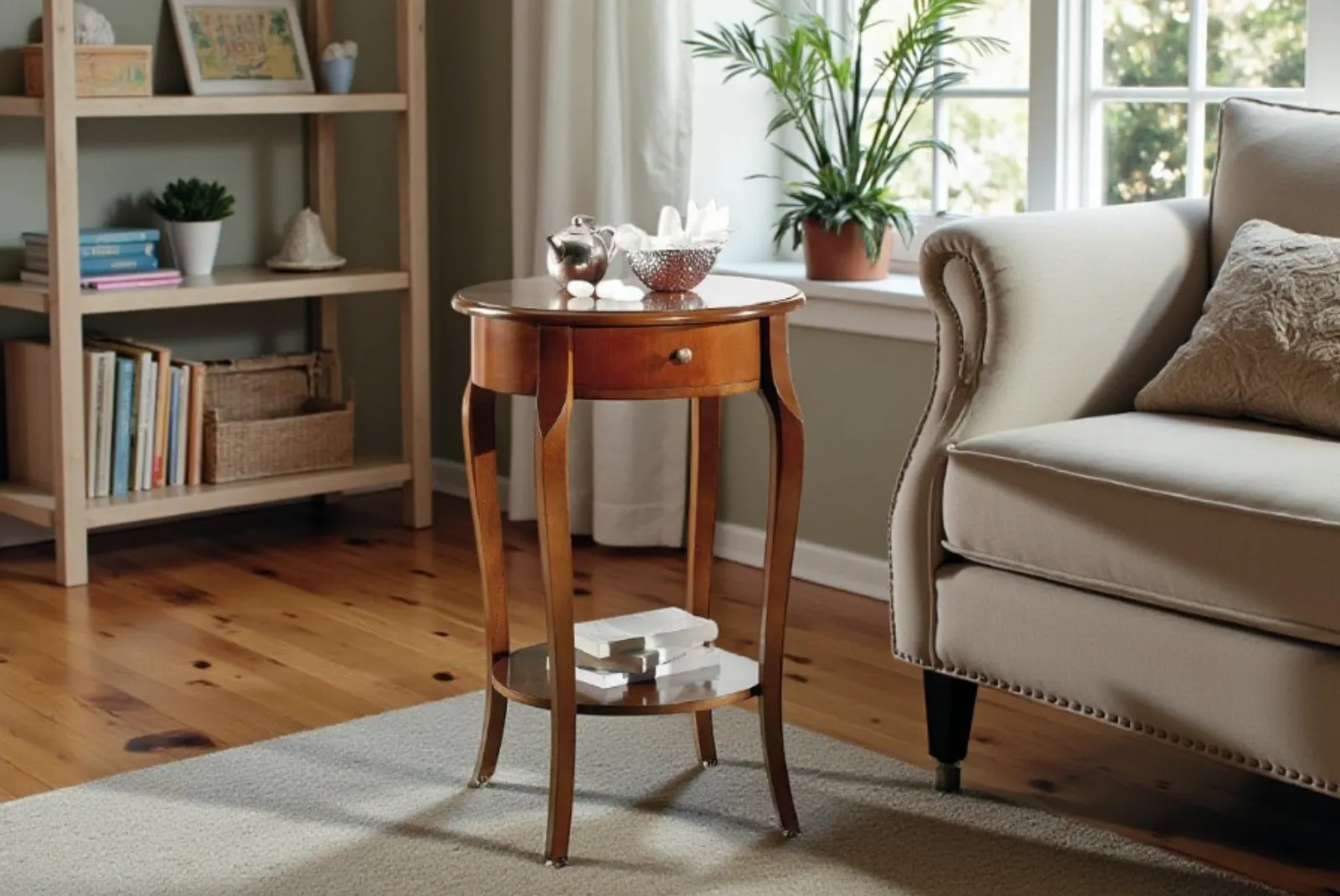 Realizzato a mano con maestria, questo Tavolino tondo 1 cassetto in ciliegio con ripiano incarna la bellezza autentica e la semplicità della natura. Le venature uniche del legno, lavorate con finiture rustiche, creano un pezzo unico e pieno di carattere.