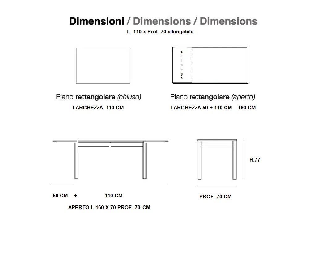 - Modello: Tavolo Allungabile 110×70