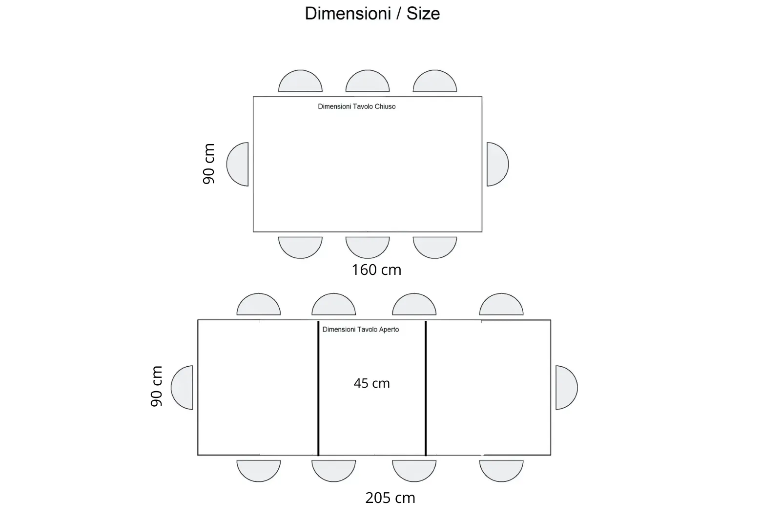 - Dimensioni aperto: L.205 – P.90 – H80 cm