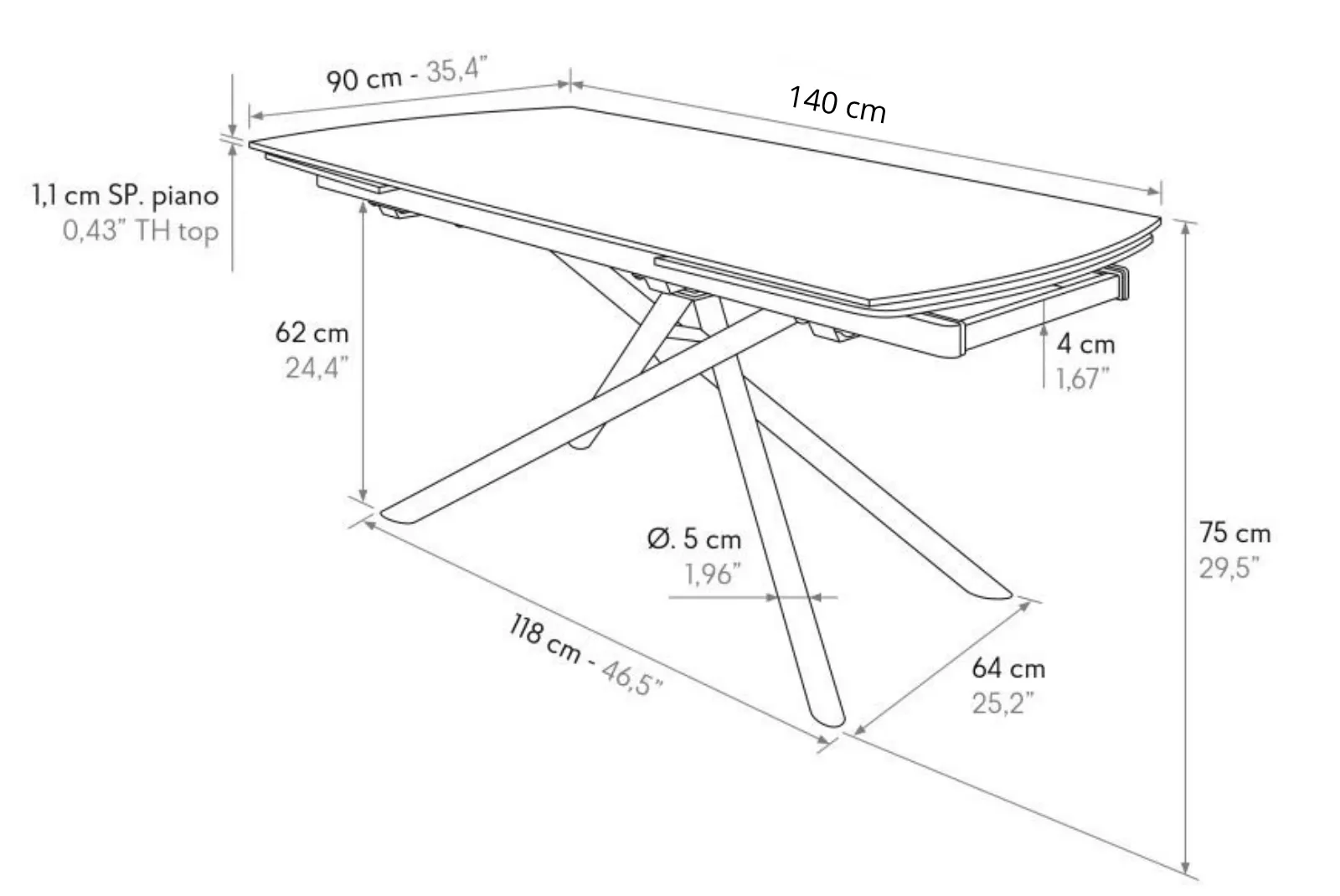 - Dimensioni chiuso: Larghezza 140 – Profondità 90 – Altezza 75 cm