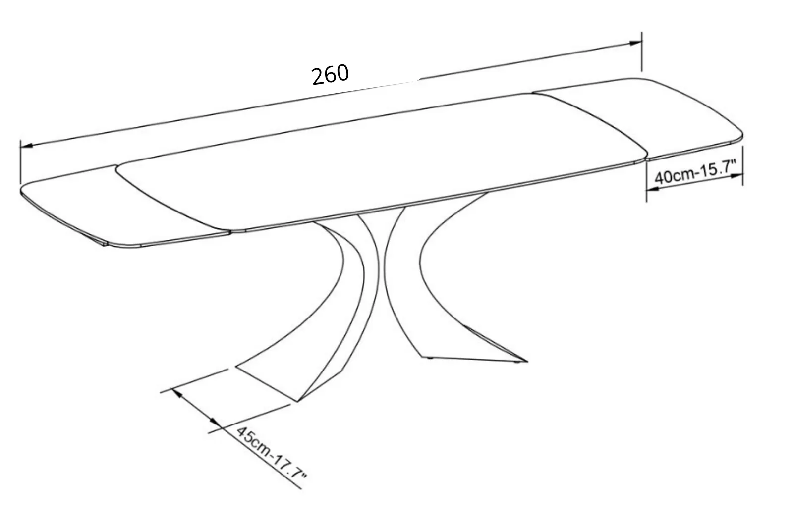 - Estensioni: 2 allunghe laterali da 40 cm