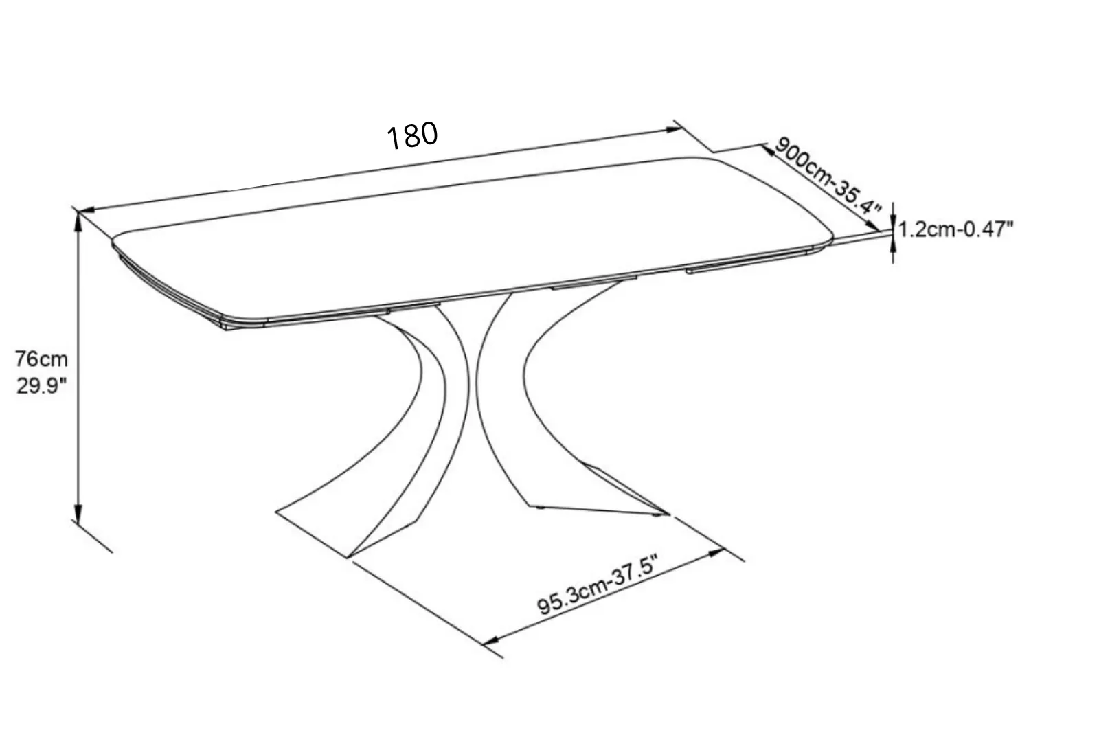 | Dimensioni Tavolo Orion | Dimensioni chiuso: L.180 – P. 90 – H. 76 cm |