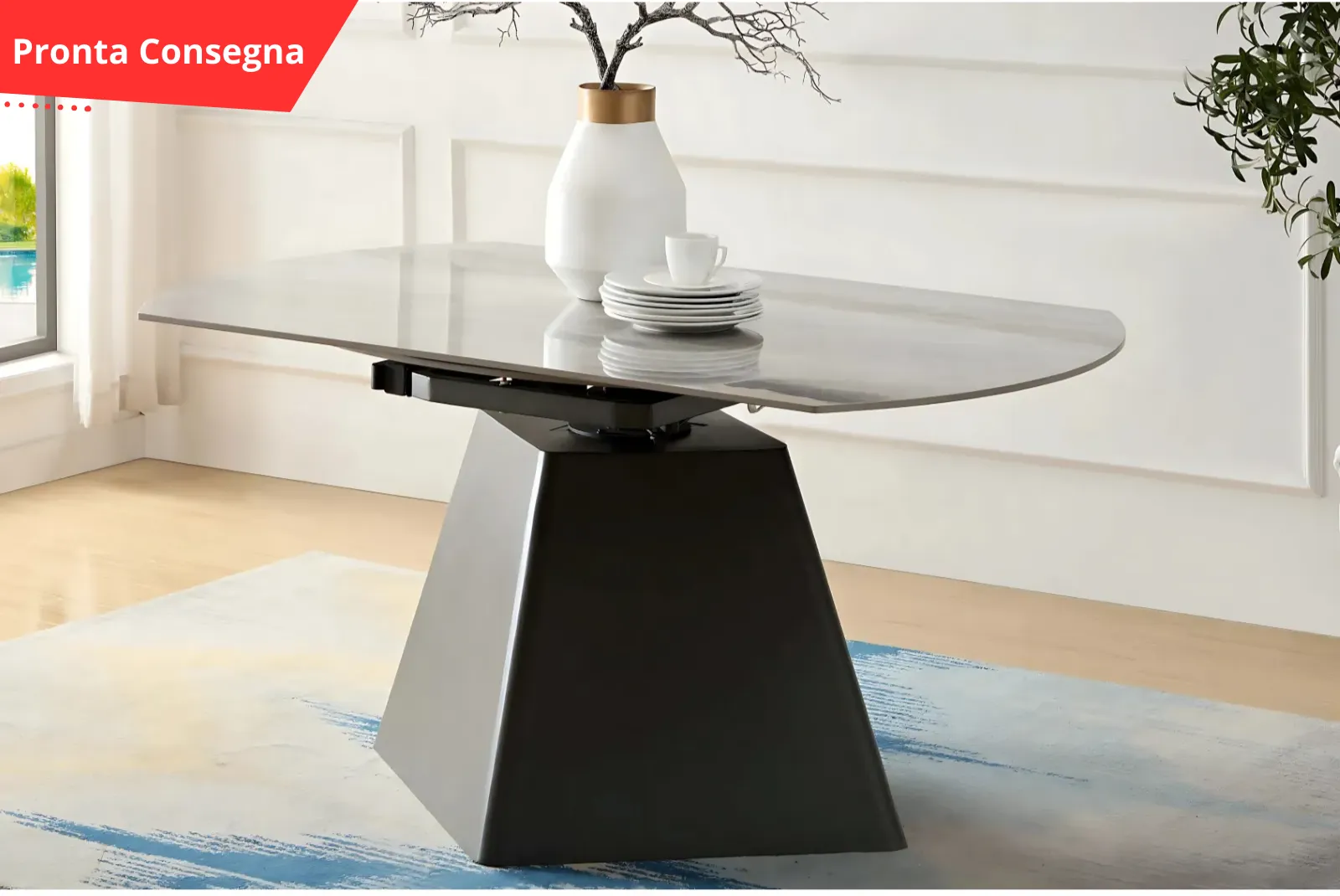 Il tavolo allungabile ZEUS 160×100 – Piano MarmoN Pronta Consegna si distingue per il suo design moderno e minimalista, perfetto per arredare con stile e funzionalità la tua casa. La sua struttura in metallo dona un tocco di leggerezza e luminosità all’ambiente, mentre il piano in marmo, garantisce un’elevata resistenza e un’estetica senza tempo.