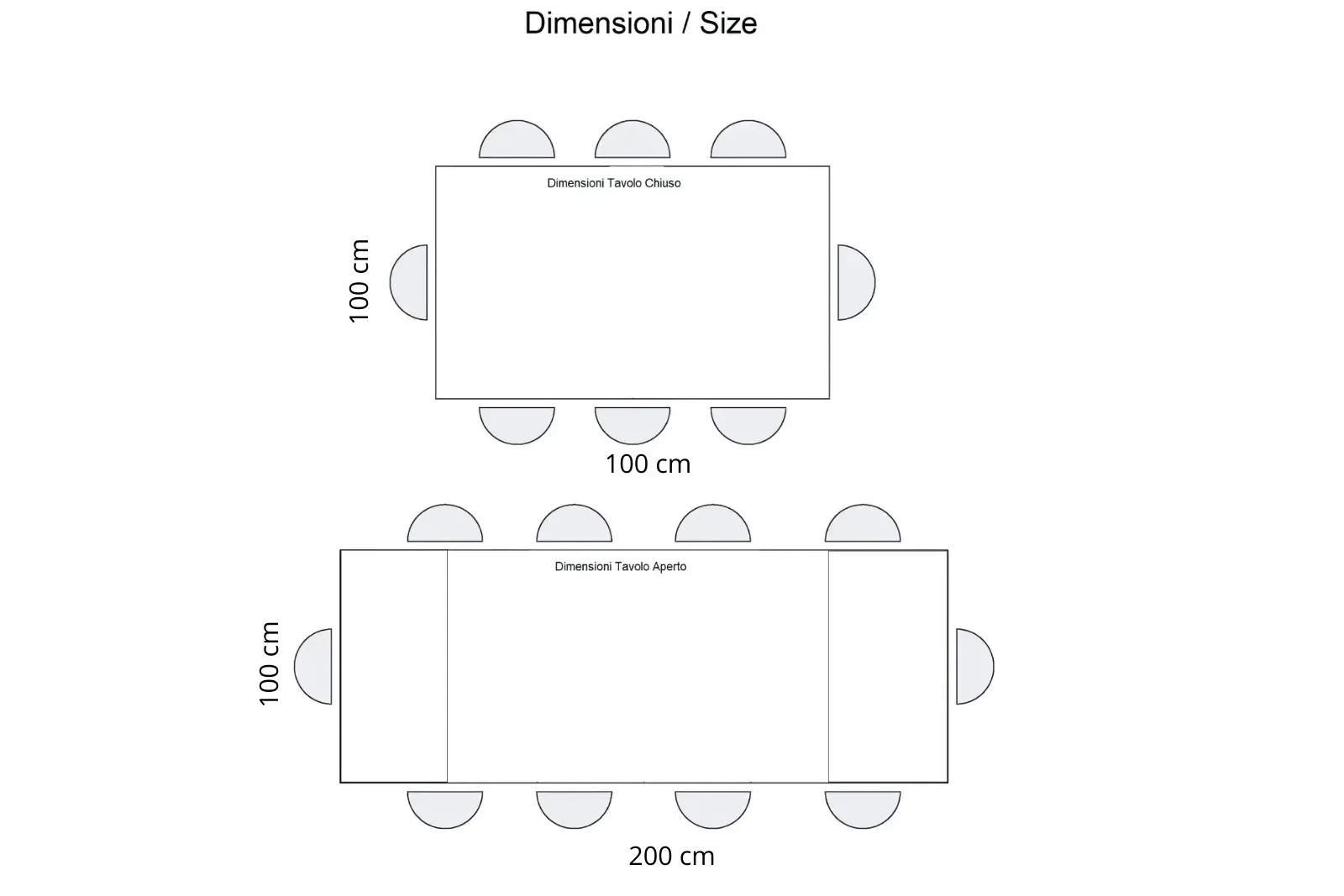 - Dimensioni aperto: L.200 – P.100 – H.79 cm