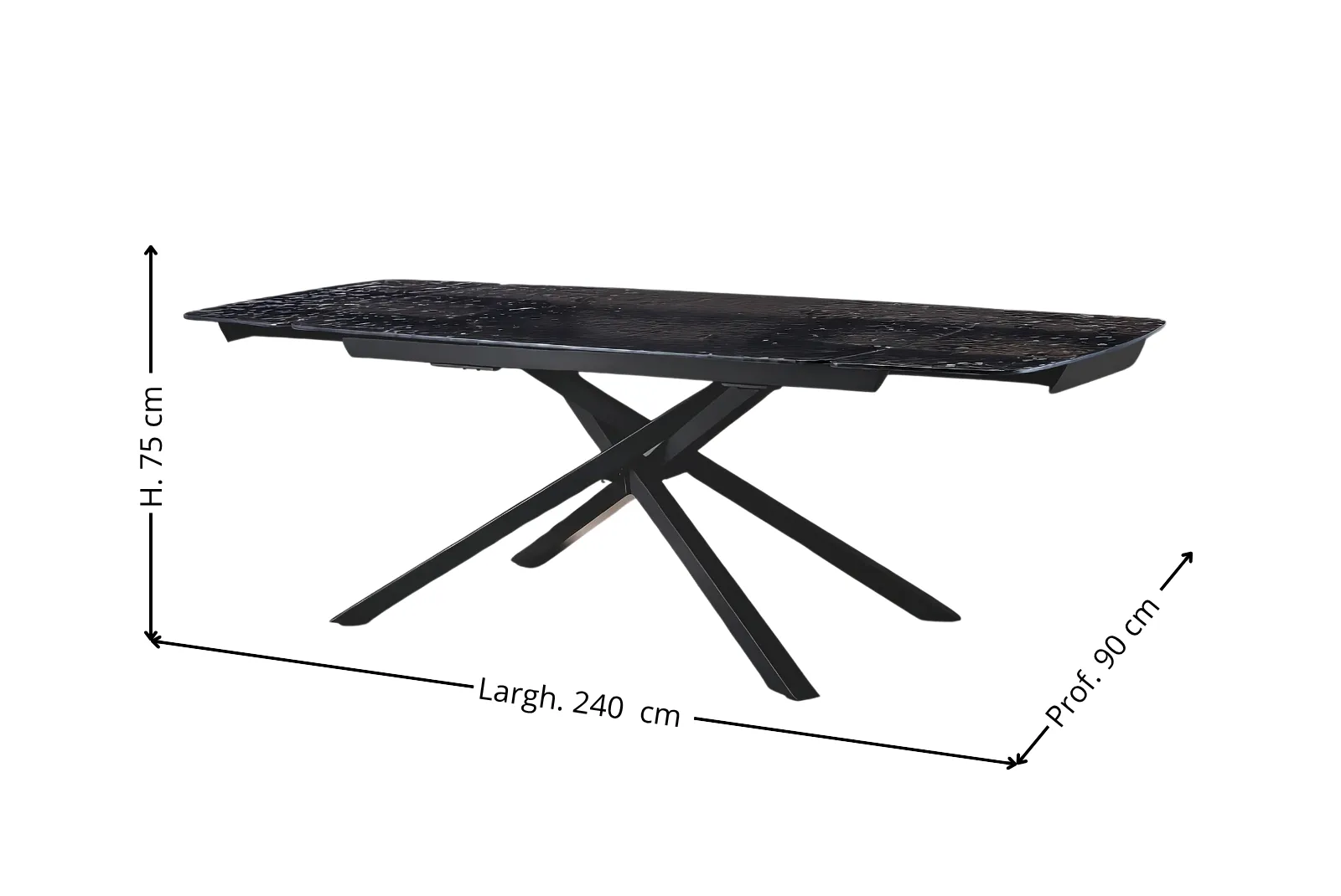 • Dimensioni aperto: Larghezza 240 – Profondità 90 – Altezza 75 cm
