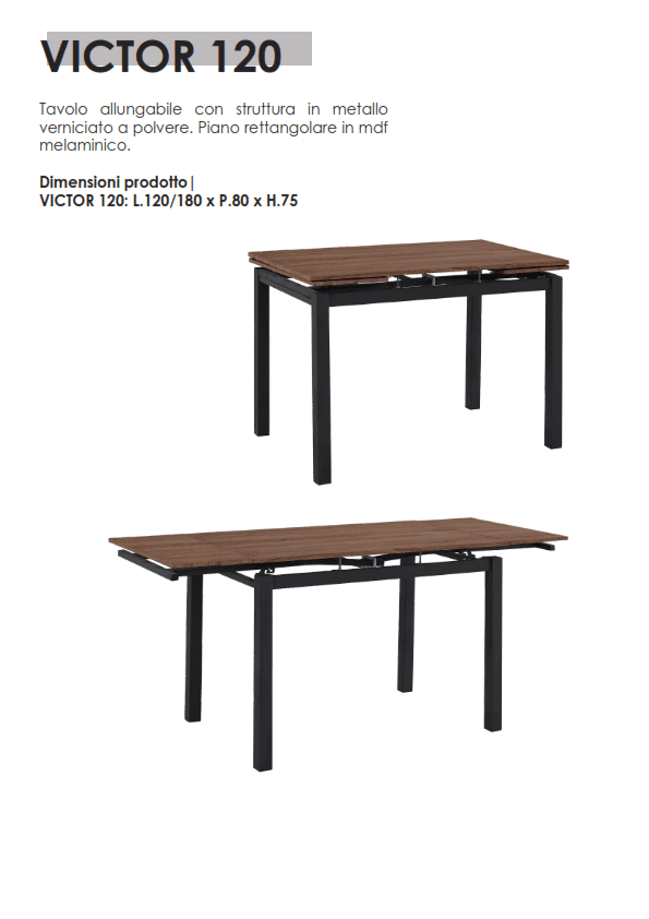 - Modello: Tavolo modello Victor 120/180