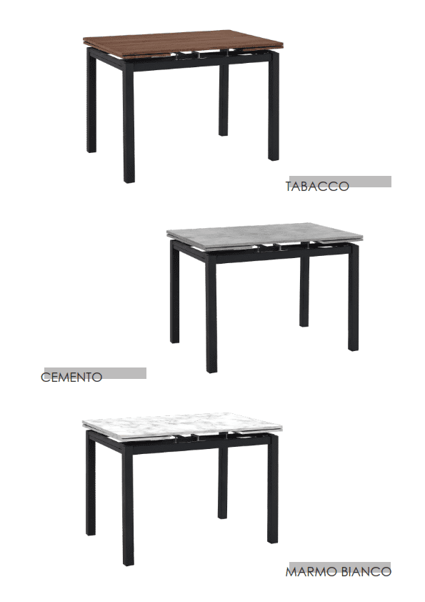 - Struttura: Metallo verniciato a polvere – Piano rettangolare in MDF melaminico