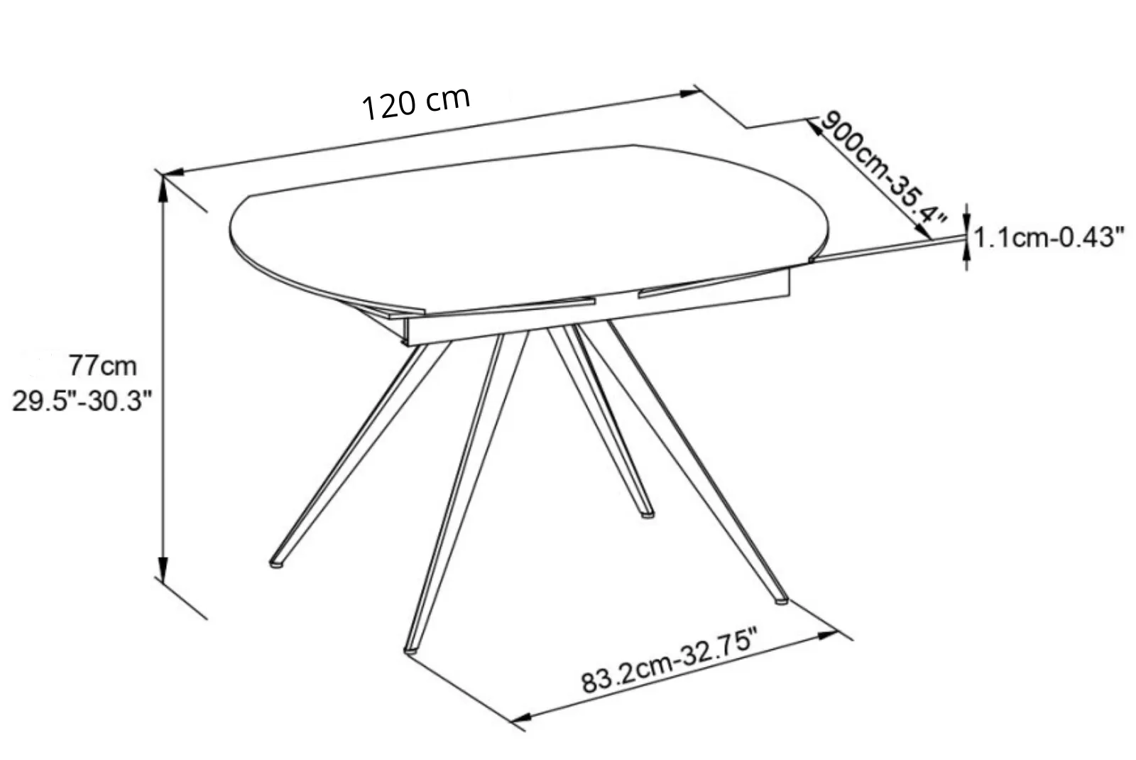 - Dimensioni chiuso: Larghezza 120 – Profondità 90 – Altezza 77 cm