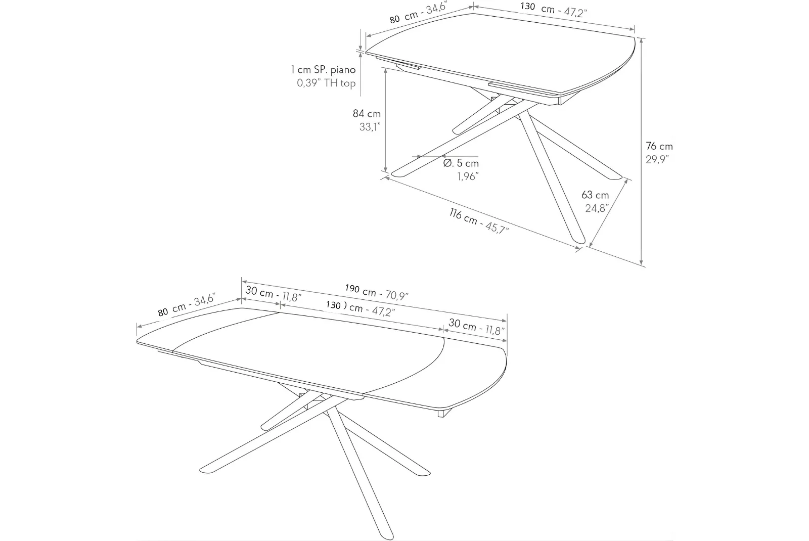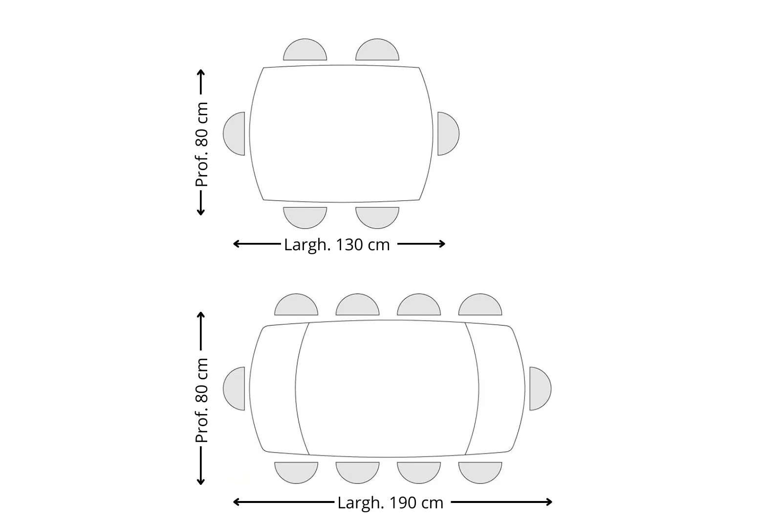 Dimensioni chiuso: Lunghezza 130 – Profondità 80 cm – Altezza 76 cm Dimensioni aperto: Lunghezza 190 – Profondità 80 cm – Altezza 76 cm
