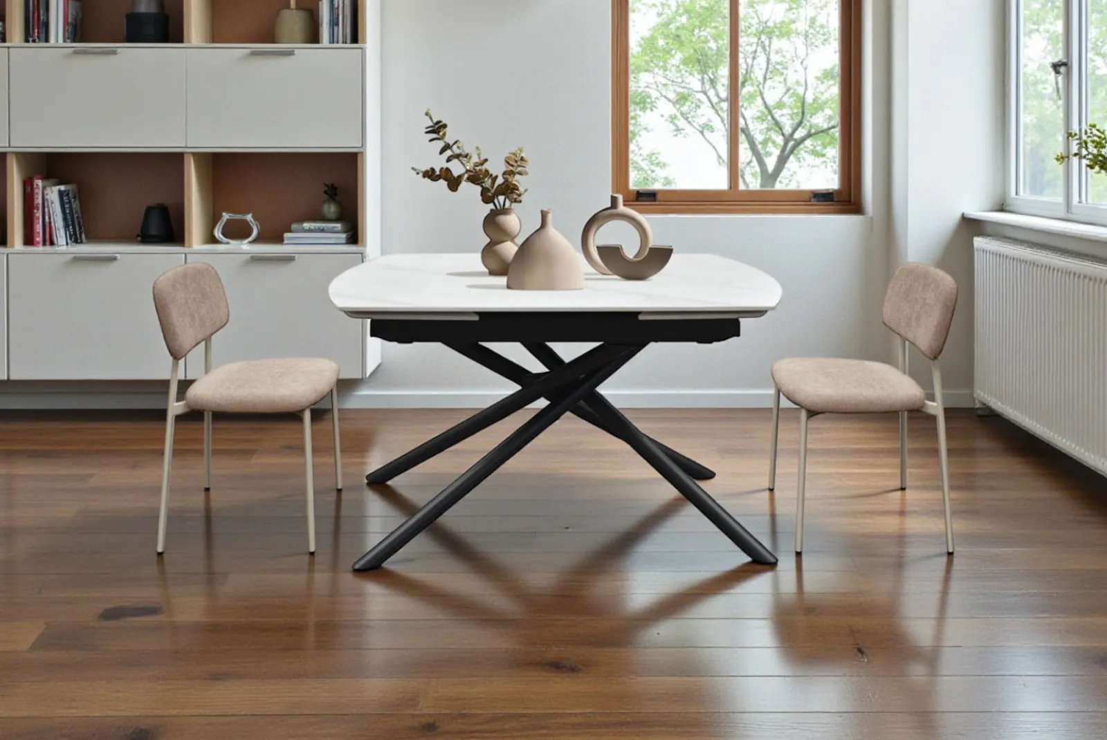Il tavolo Rotante Perla 130 – gambe Nero è un capolavoro di design accattivante pensato per chi desidera un eleganza moderna e contemporanea