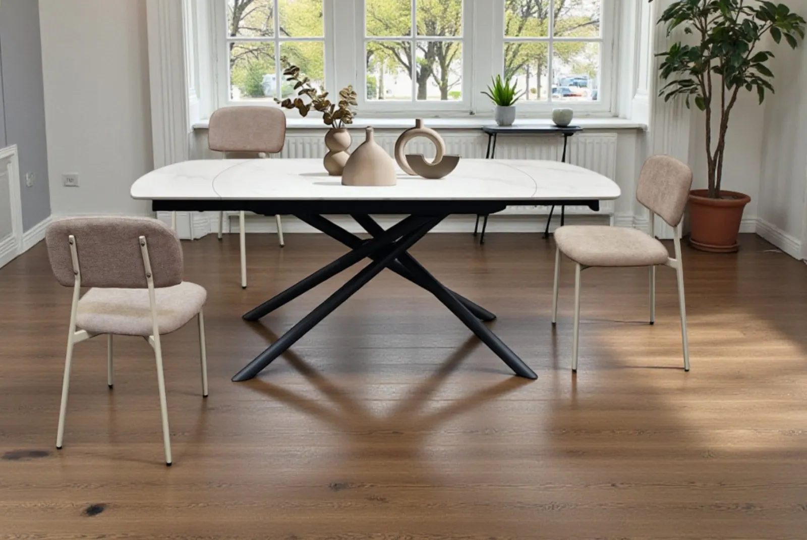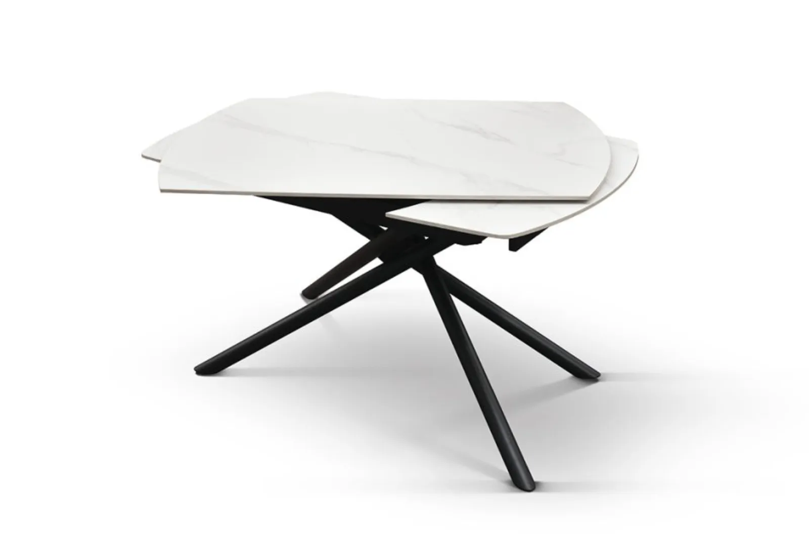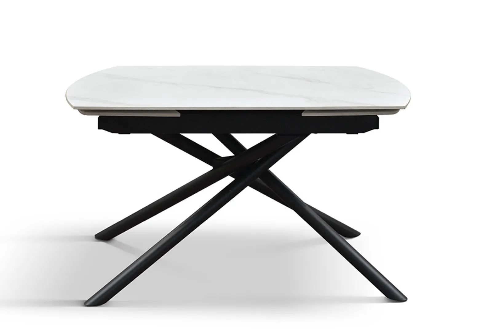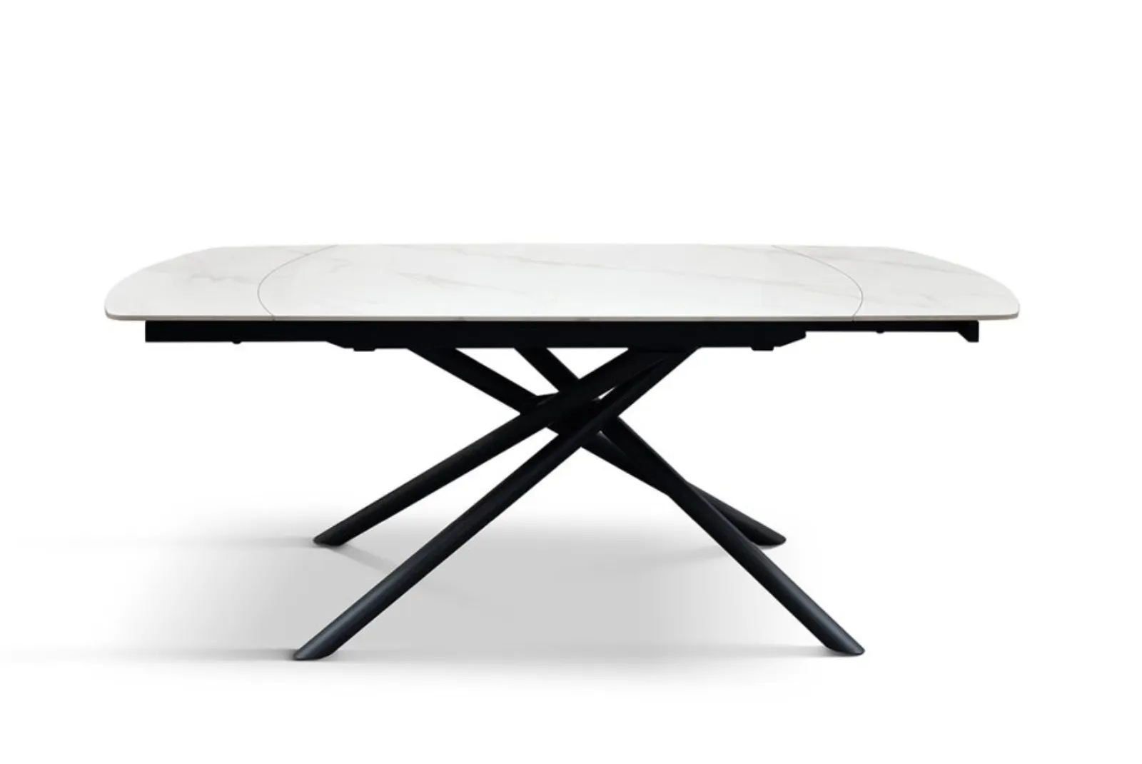 Il piano in ceramica effetto marmo bianco statuario è elegante e duraturo, mentre la struttura tubolare in metallo nero opaco aggiunge un tocco di modernità e leggerezza. Questa combinazione unica di elementi lo rende perfetto per qualsiasi ambiente, sia classico che moderno, adattandosi facilmente a diverse tipologie di arredamento.