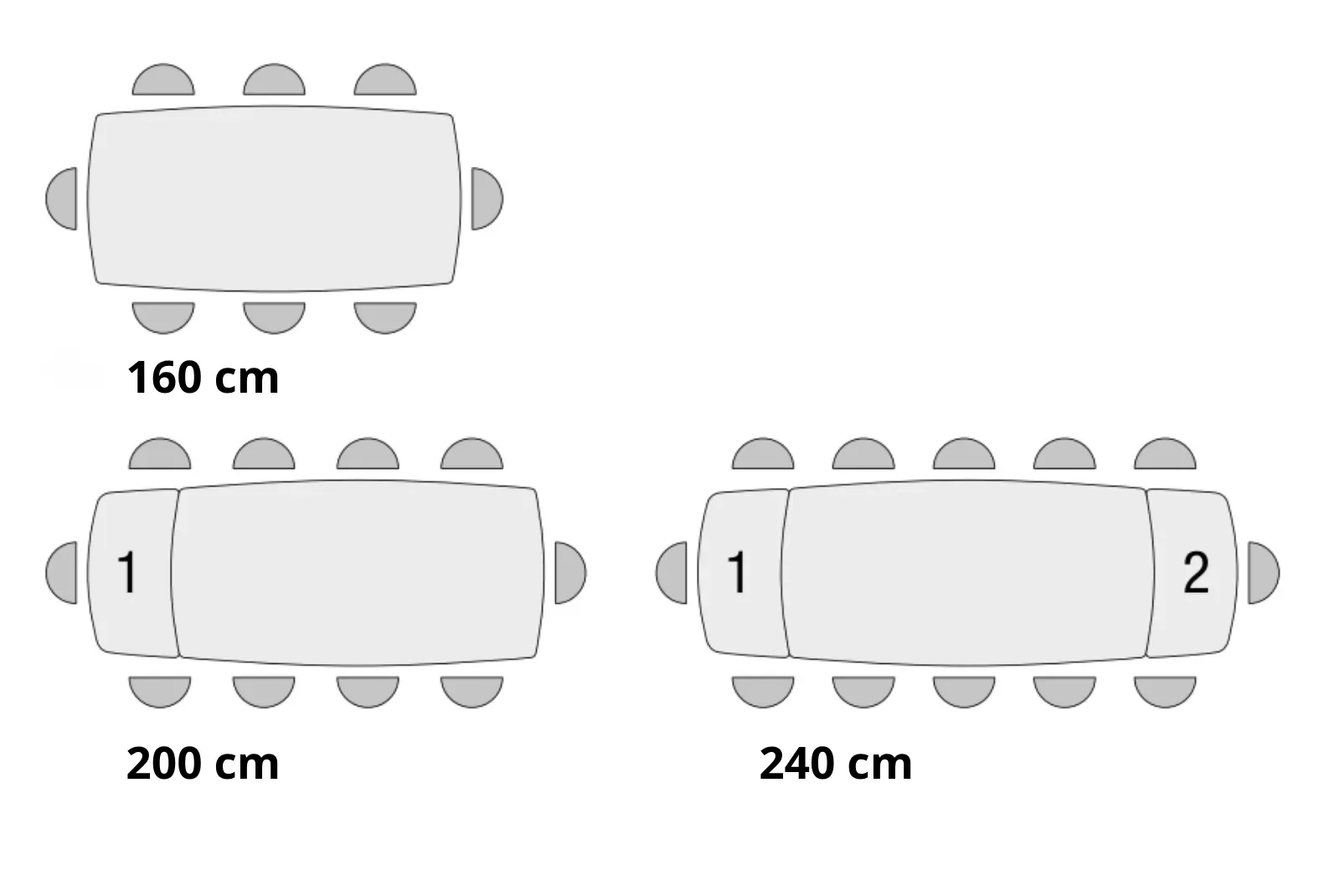 - Non c’è perfetta continuità delle venature tra i due mezzi piani del tavolo e con le allunghe.