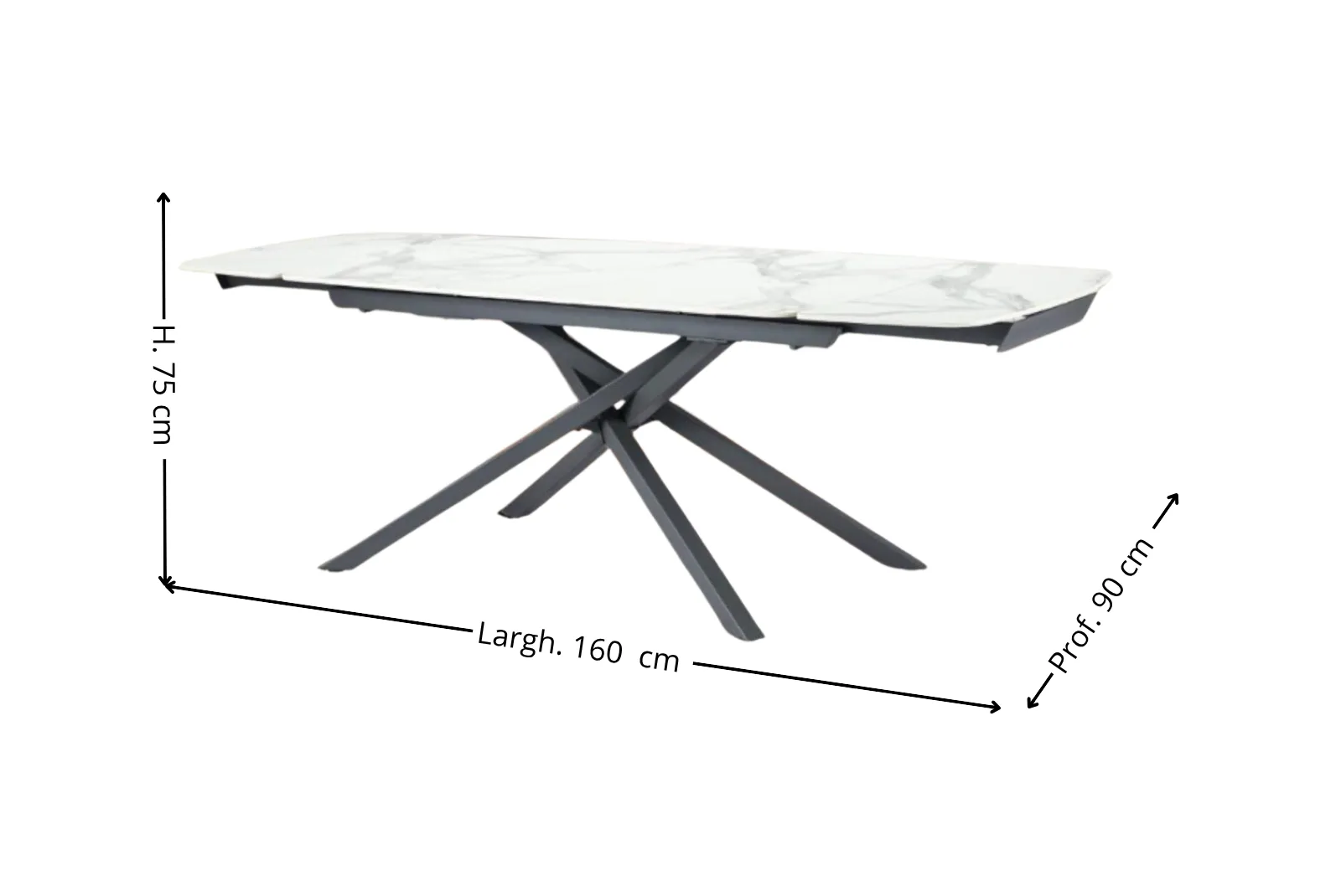 - Dimensioni chiuso: Larghezza 160 cm (allungabile) – Profondità 90 cm – Altezza 75 cm