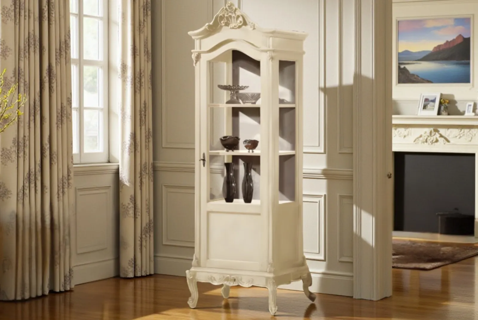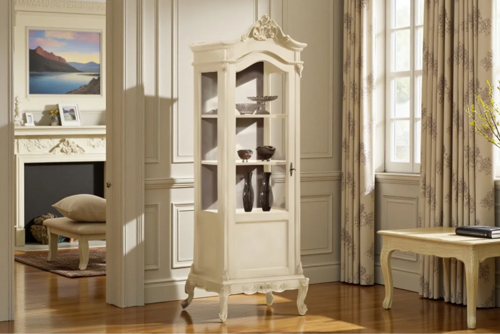 Realizzata a mano con maestria, questa Vetrina incarna la bellezza autentica e la semplicità della natura. Le venature uniche del legno, lavorate con finitura in Laccato Avorio, creano un pezzo unico e pieno di carattere. Perfetta per un soggiorno accogliente è un invito alla convivialità e al calore di una casa vissuta.