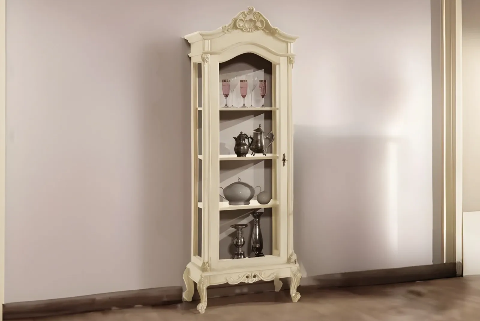 Realizzata a mano con maestria, questa Vetrina incarna la bellezza autentica e la semplicità della natura. Le venature uniche del legno, lavorate con finitura in Laccato Avorio, creano un pezzo unico e pieno di carattere. Perfetta per un soggiorno accogliente è un invito alla convivialità e al calore di una casa vissuta.